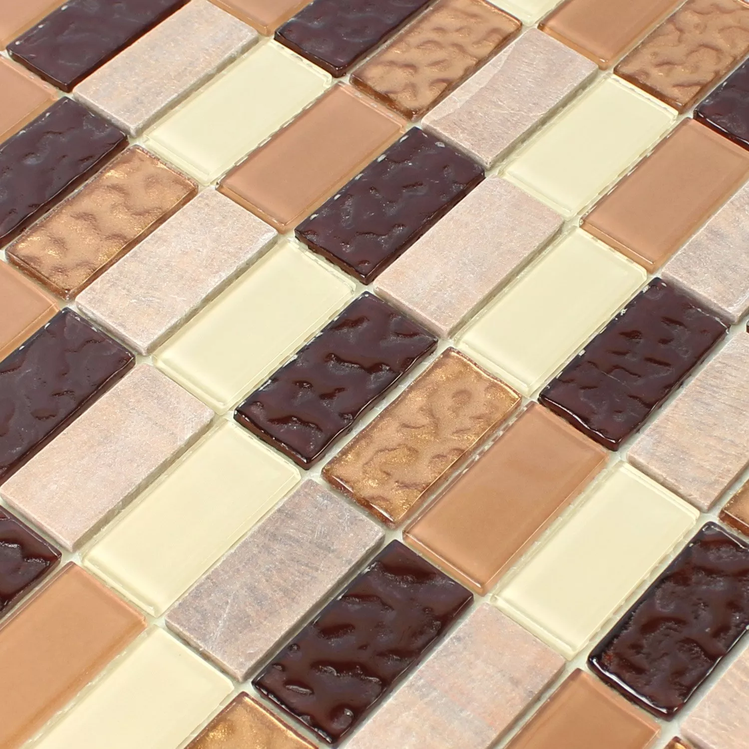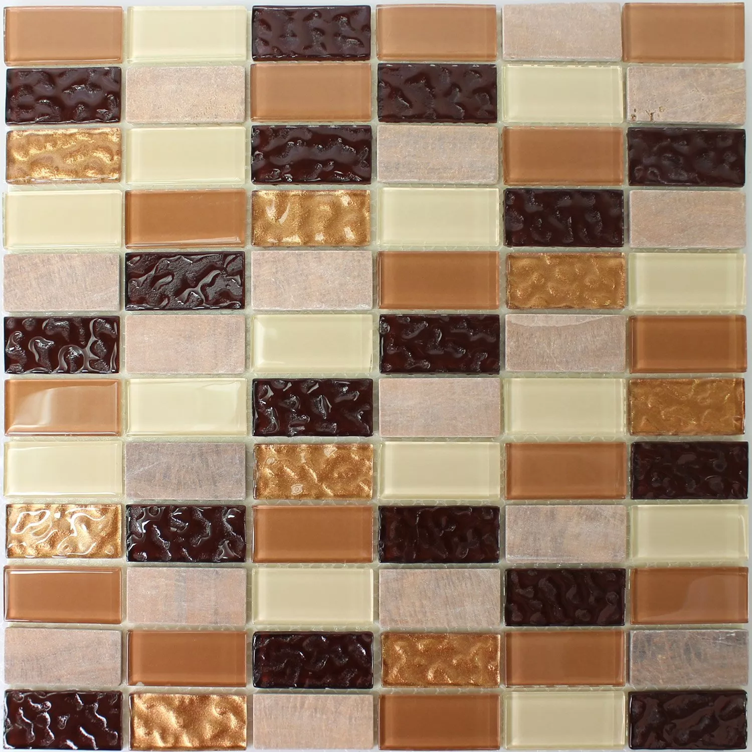 Autoadesivoe Mosaico Pietra Naturale Vetro Beige Marrone Brick
