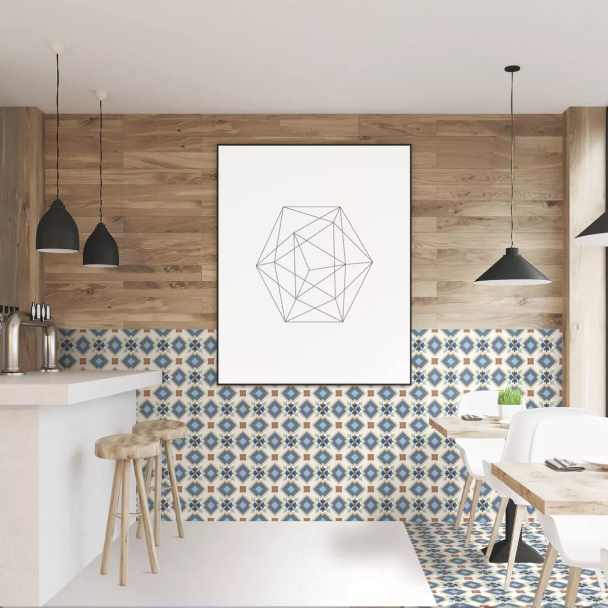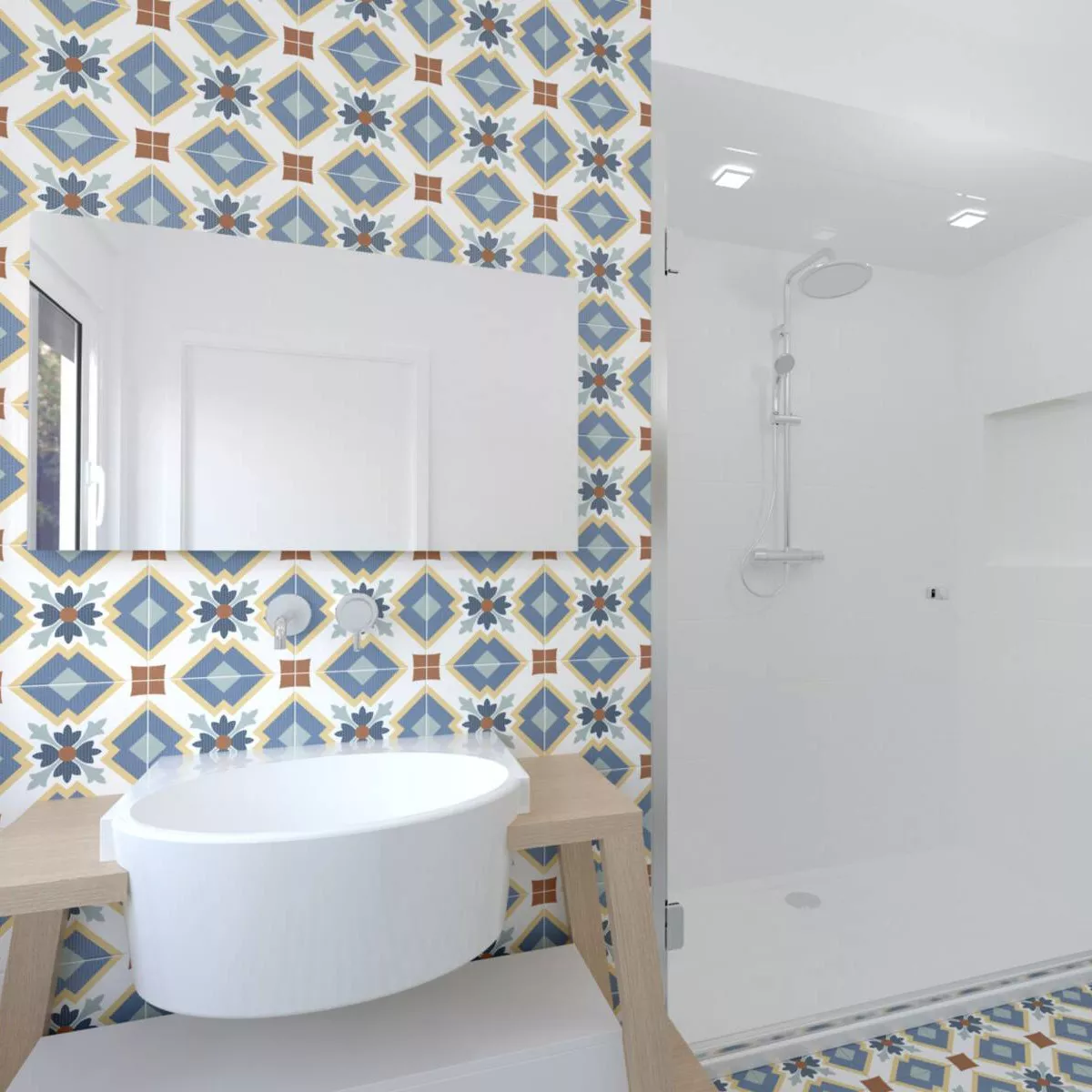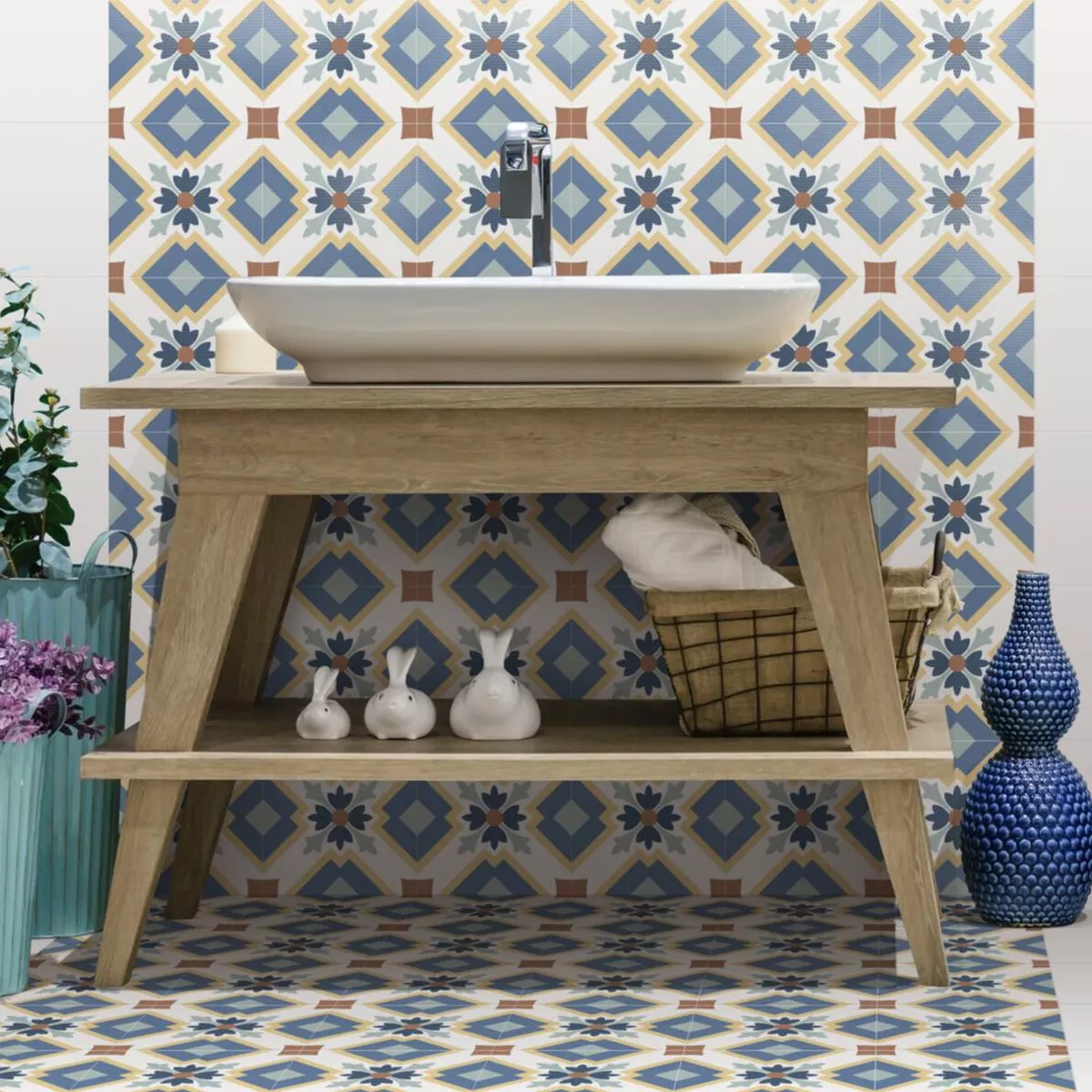 Con la sua varietà di colori – blu, giallo, marrone e bianco – il pavimento in gres porcellanato Bucharest si adatta a qualsiasi stile d'interni e crea un'atmosfera armoniosa. Inoltre, è adatto al riscaldamento a pavimento, offrendo così un comfort aggiuntivo.
