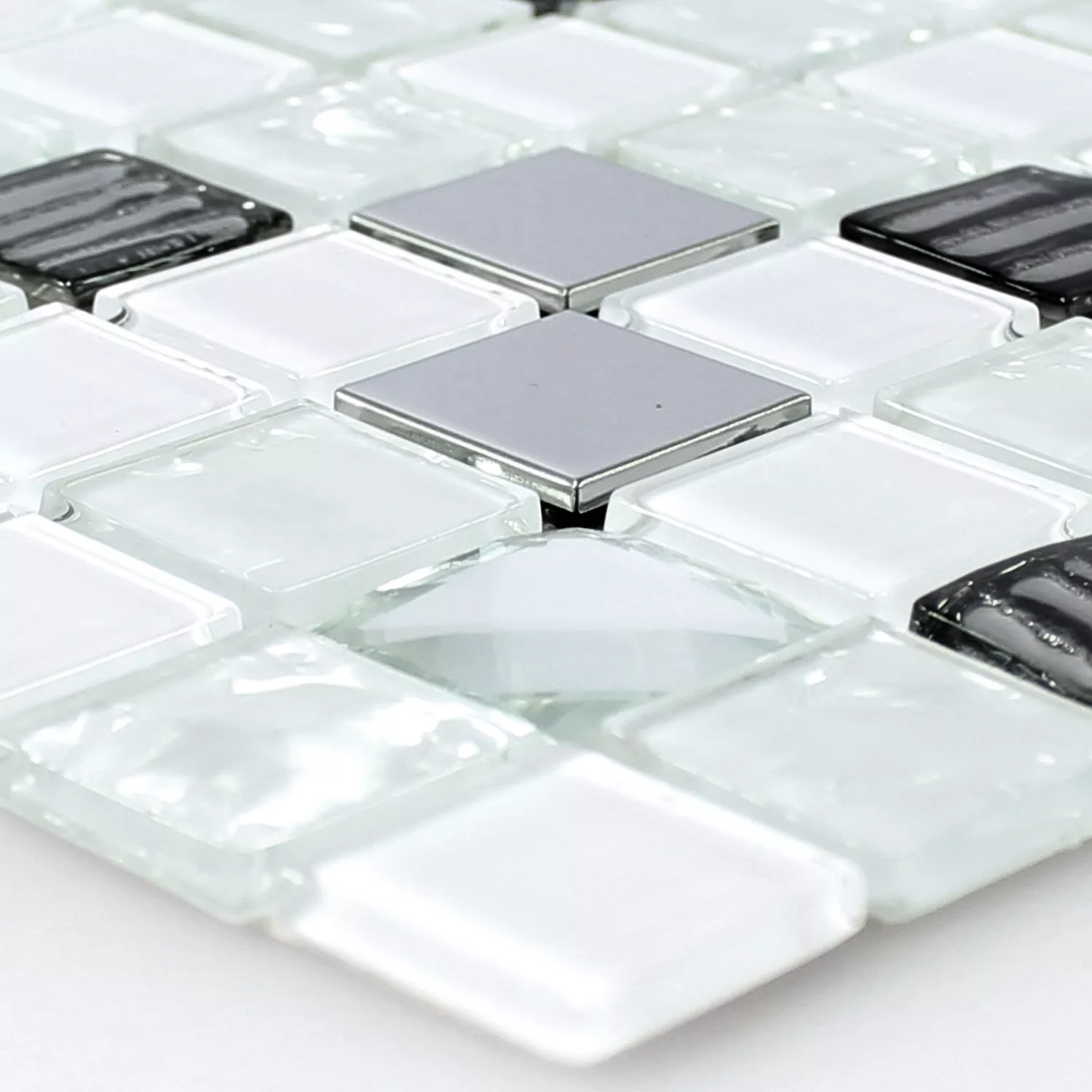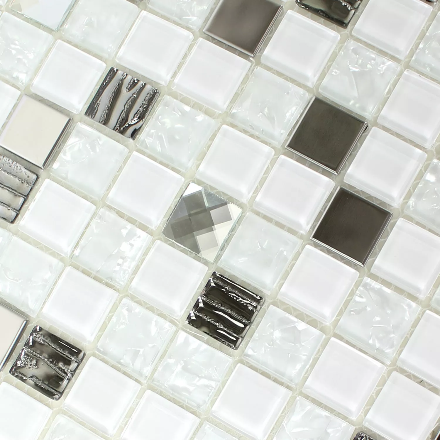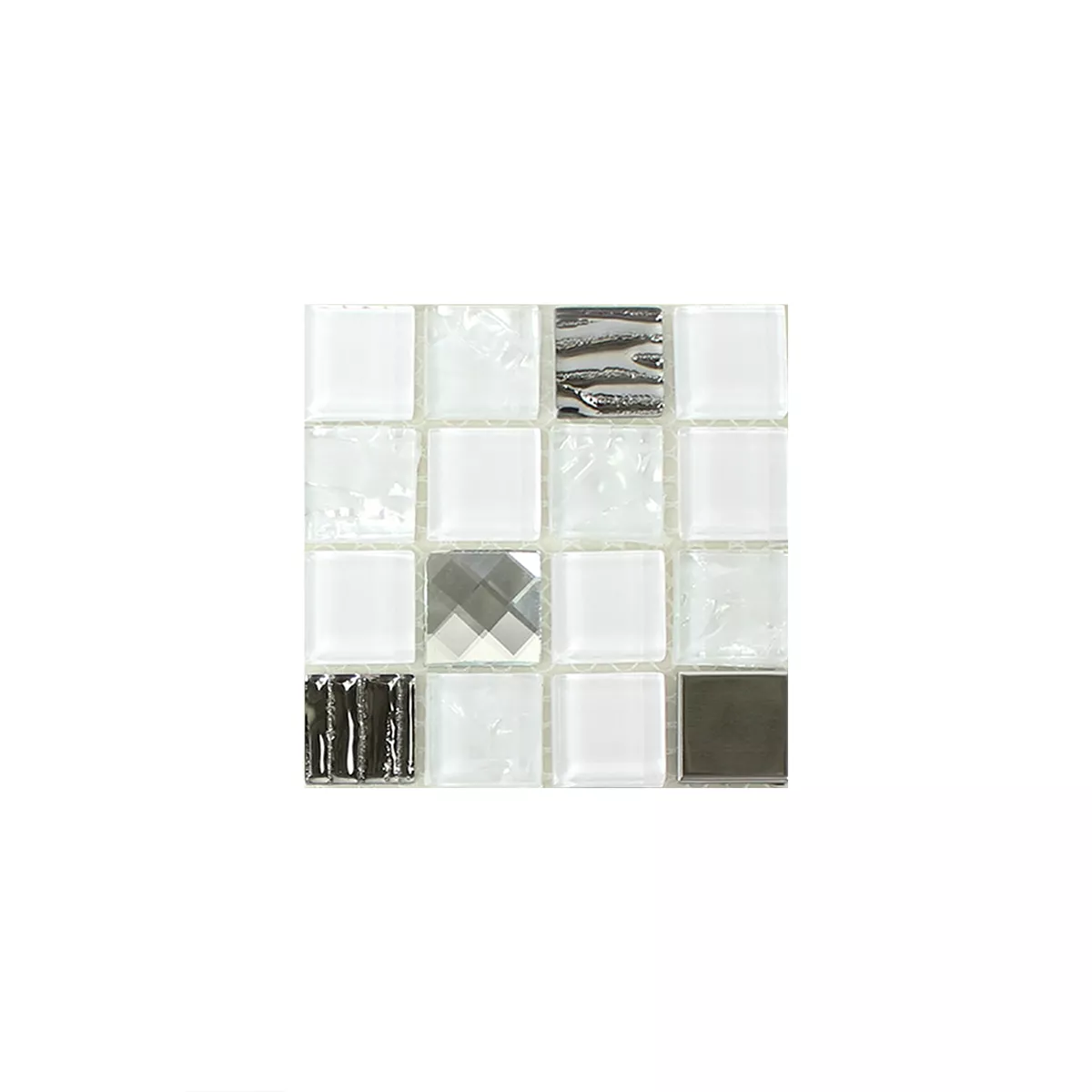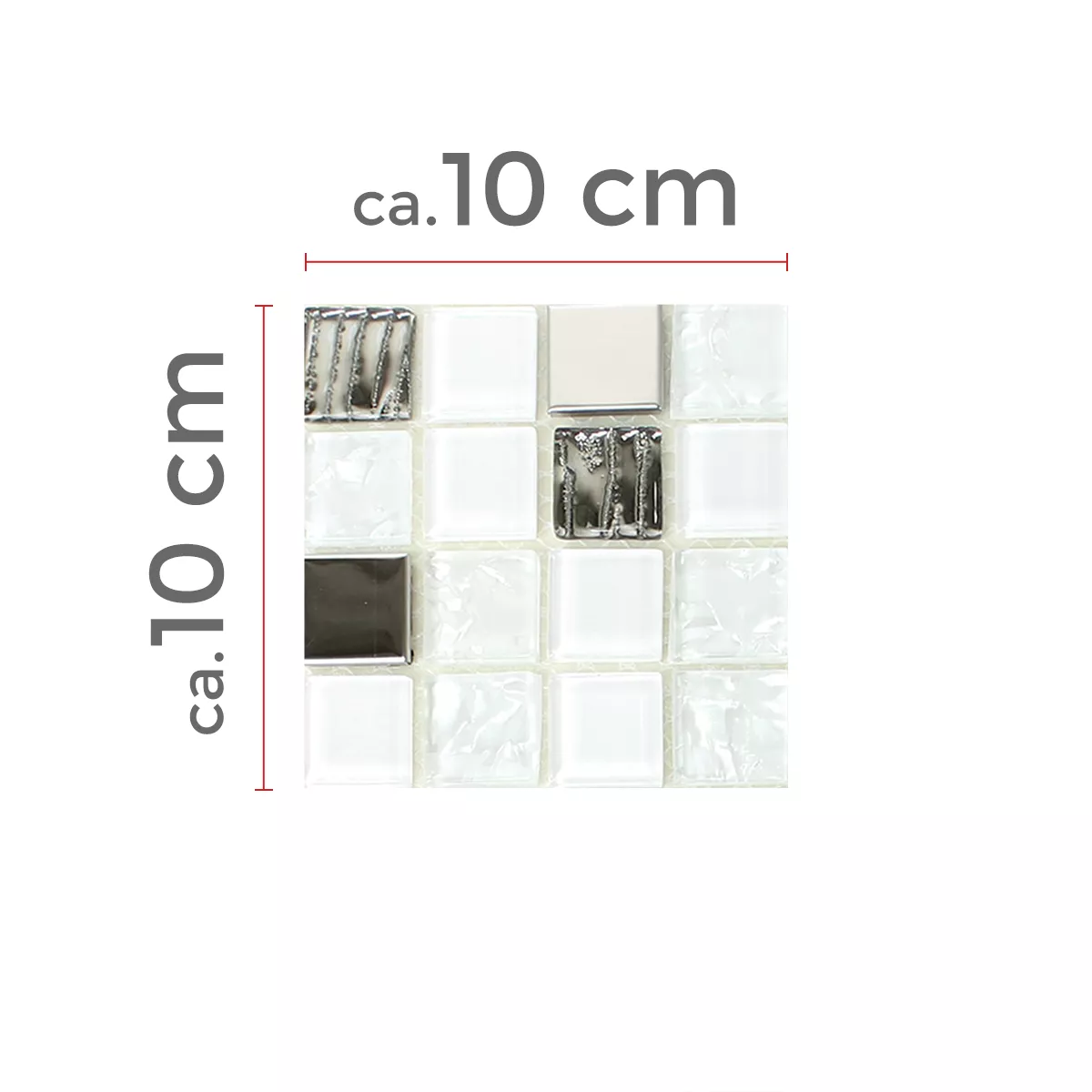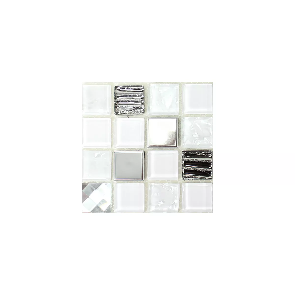 Campione Autoadesivo Vetro Metallo Mosaico Bianco Argento