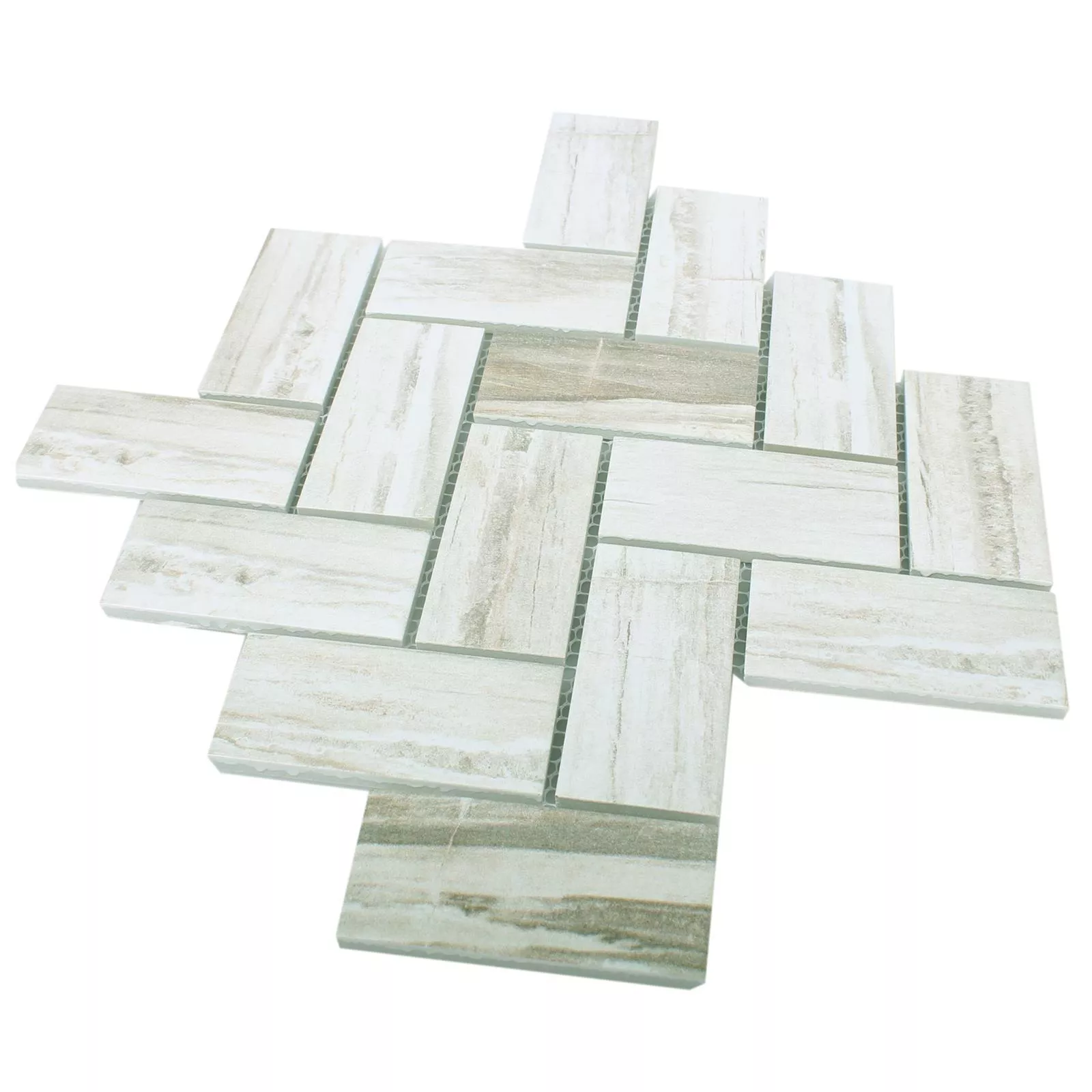 Campione Ceramica Legno Ottica Mosaico Norfolk Lisca Pesce Bianco