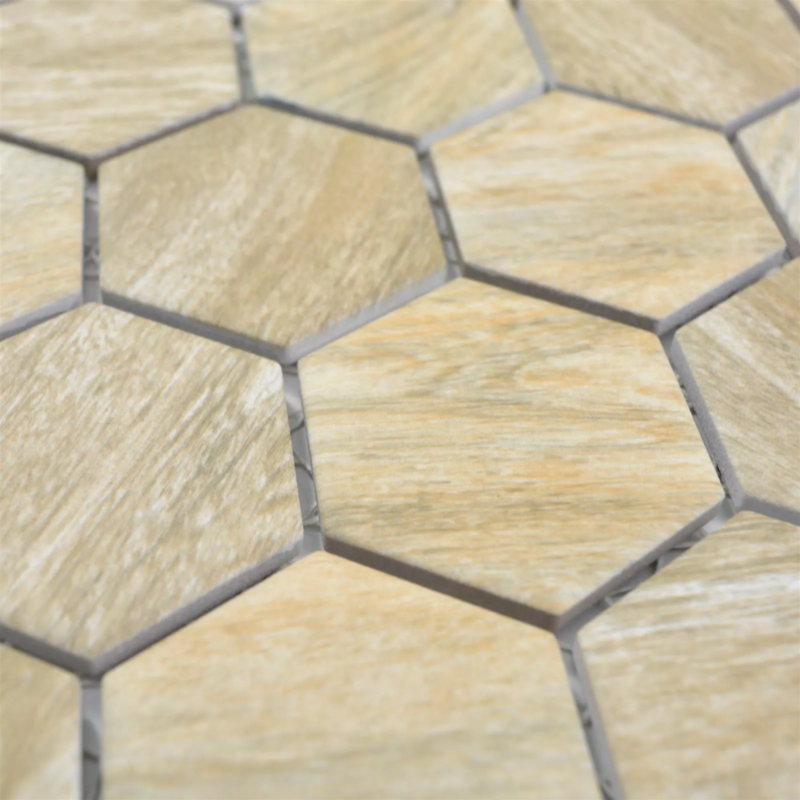 Campione Ceramica Mosaico Duponti Esagono Legno Ottica Beige