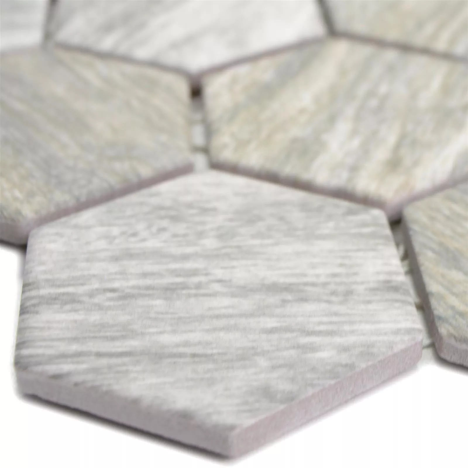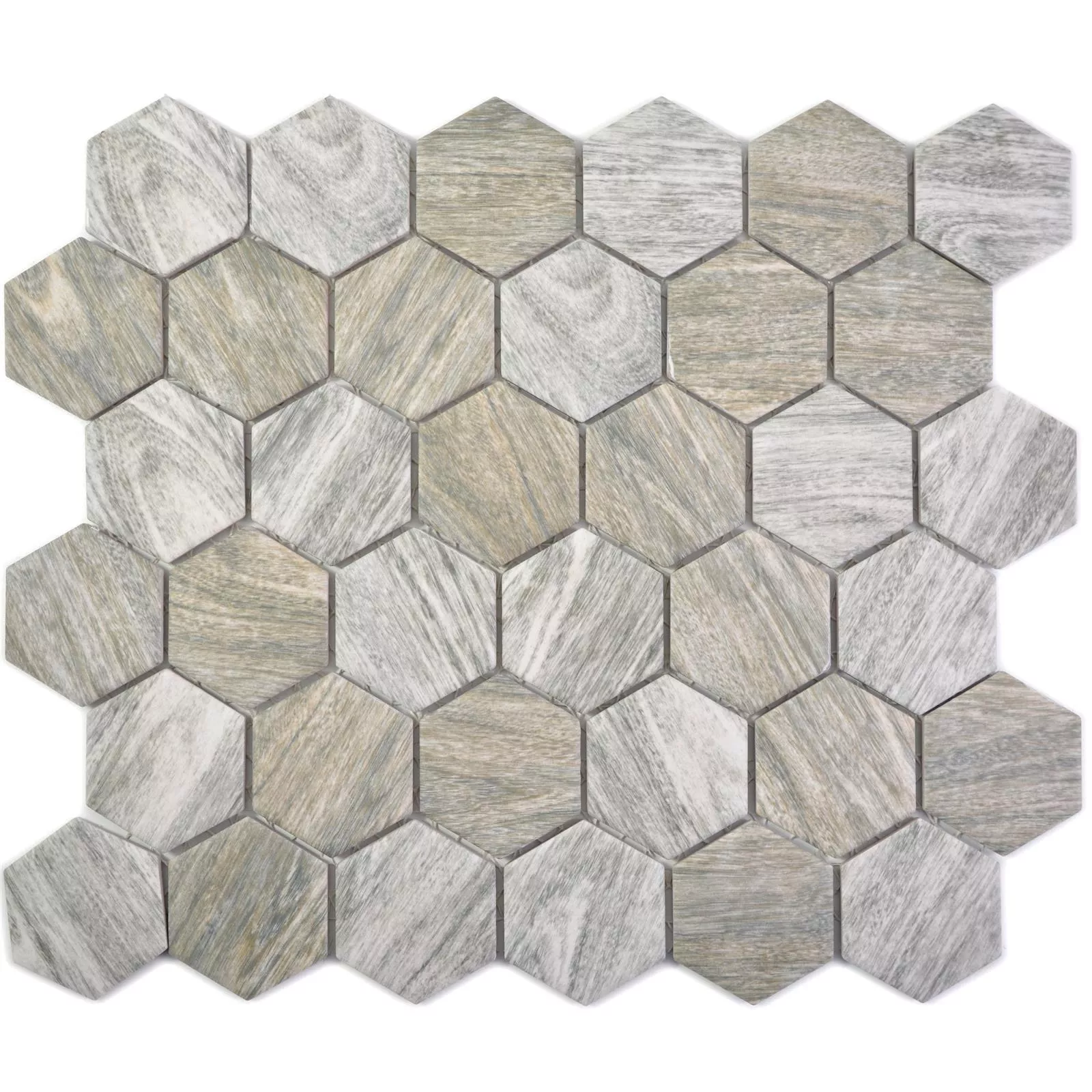 Campione Ceramica Mosaico Duponti Esagono Legno Ottica Grigio