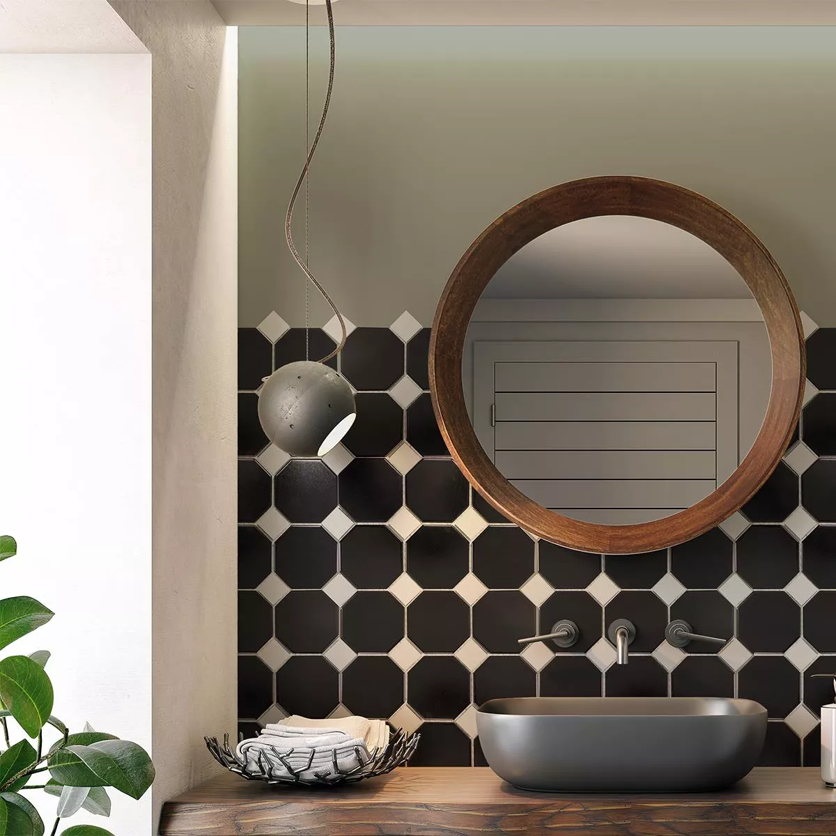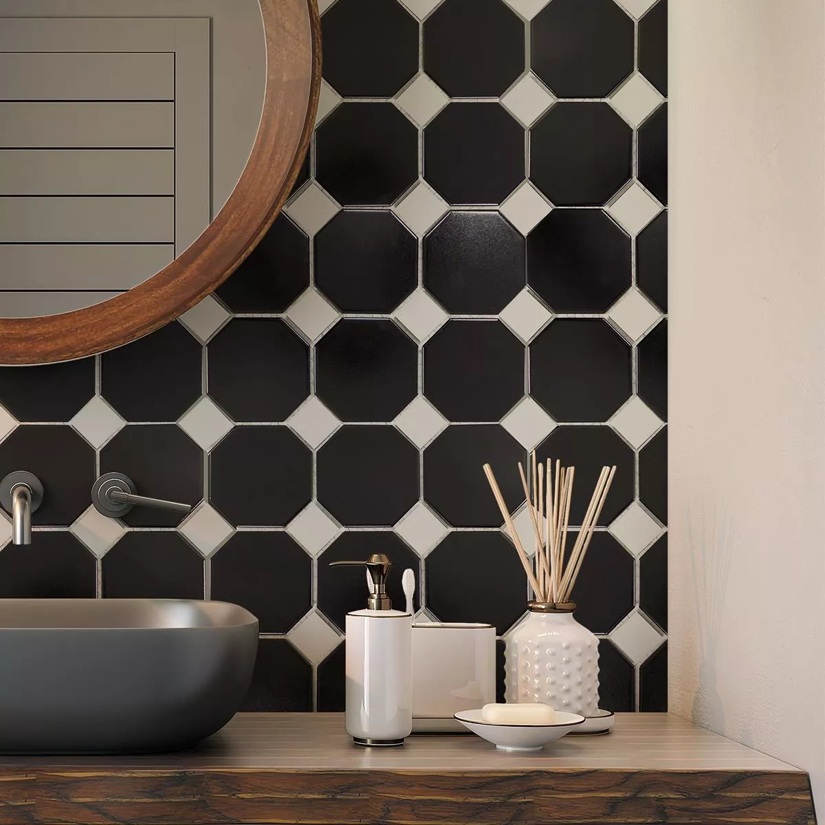 Campione Ceramica Mosaico Ottagono Fürstenberg Nero Bianco