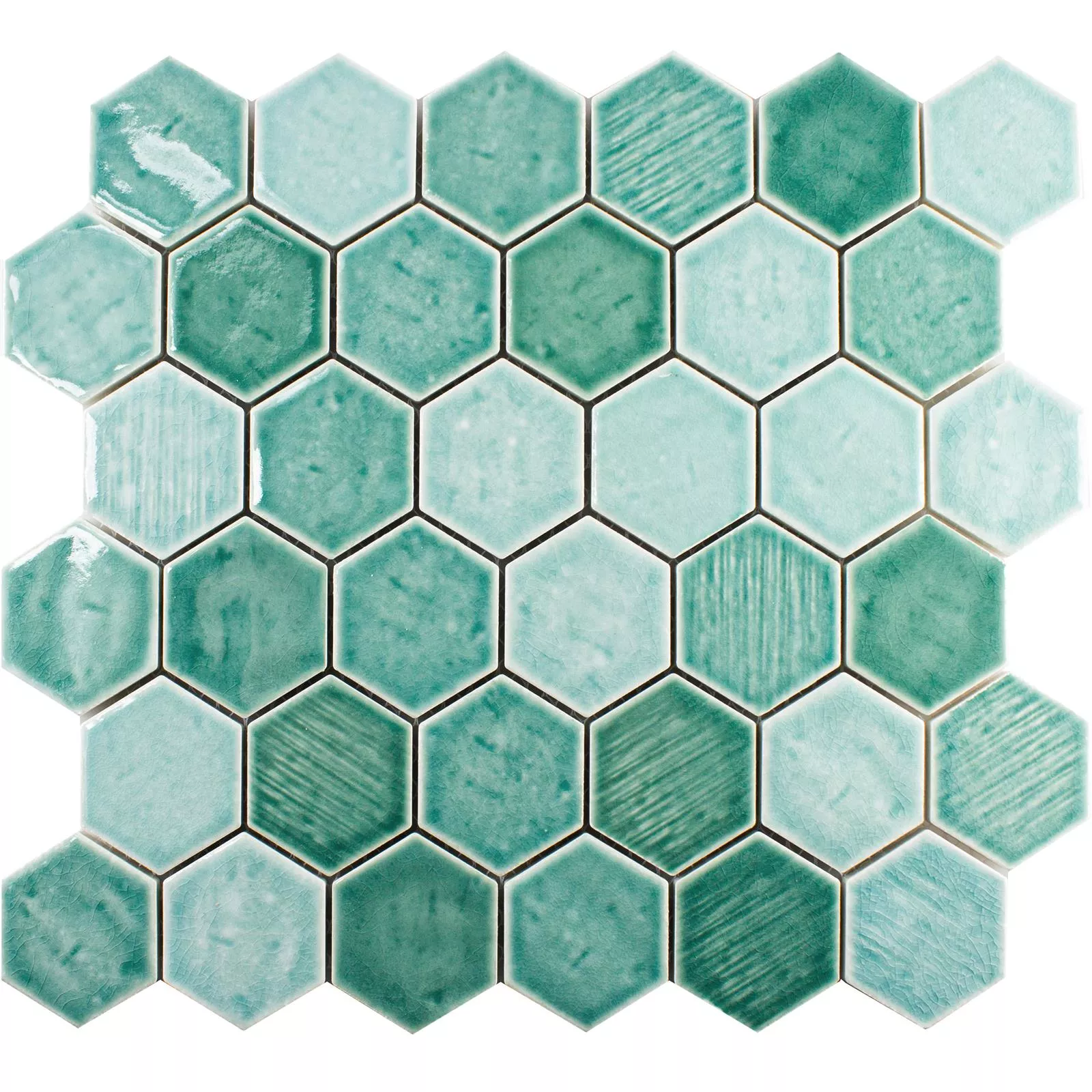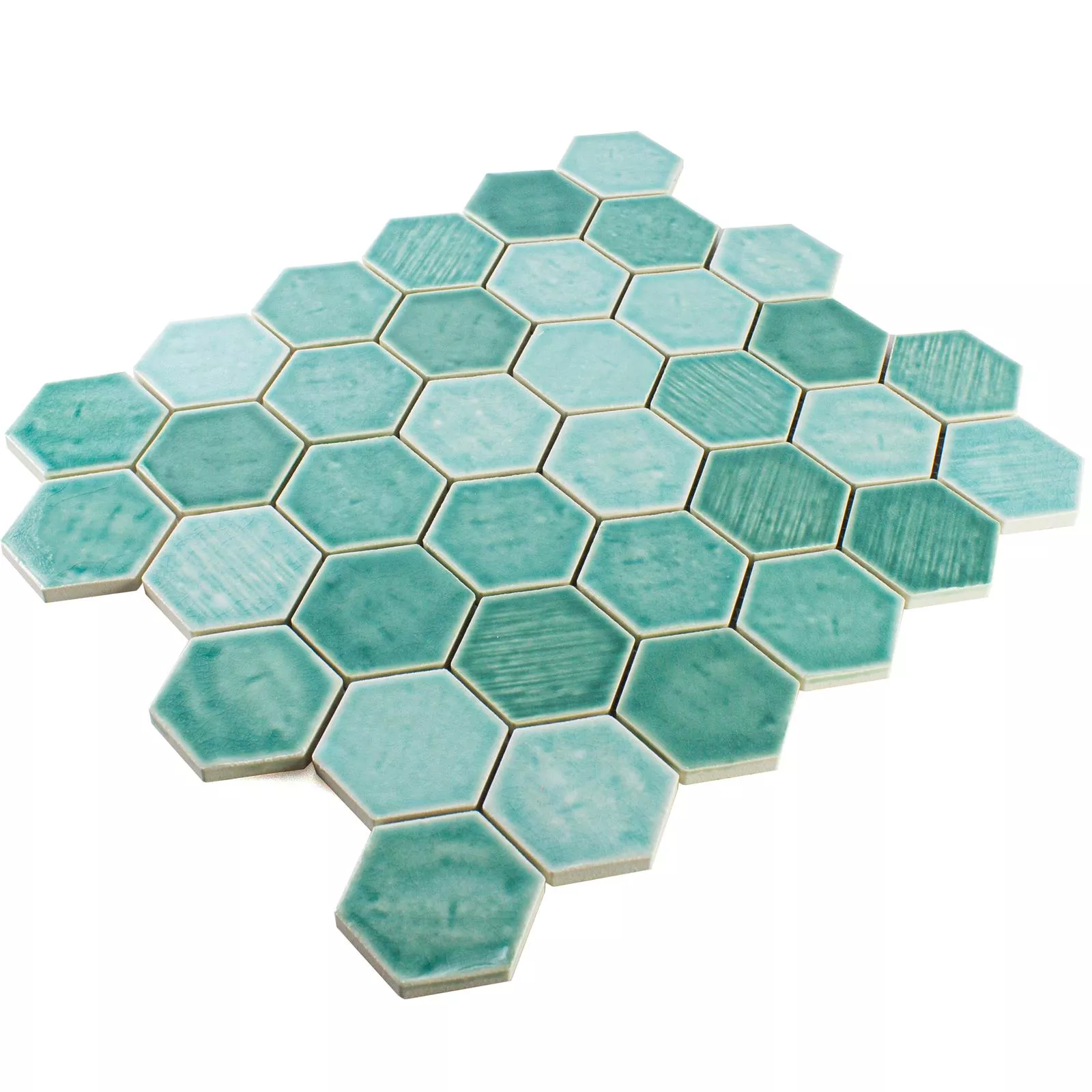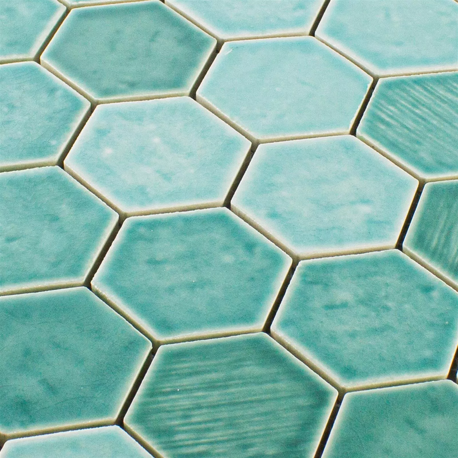Campione Ceramica Mosaico Roseburg Esagono Lucida Turchese