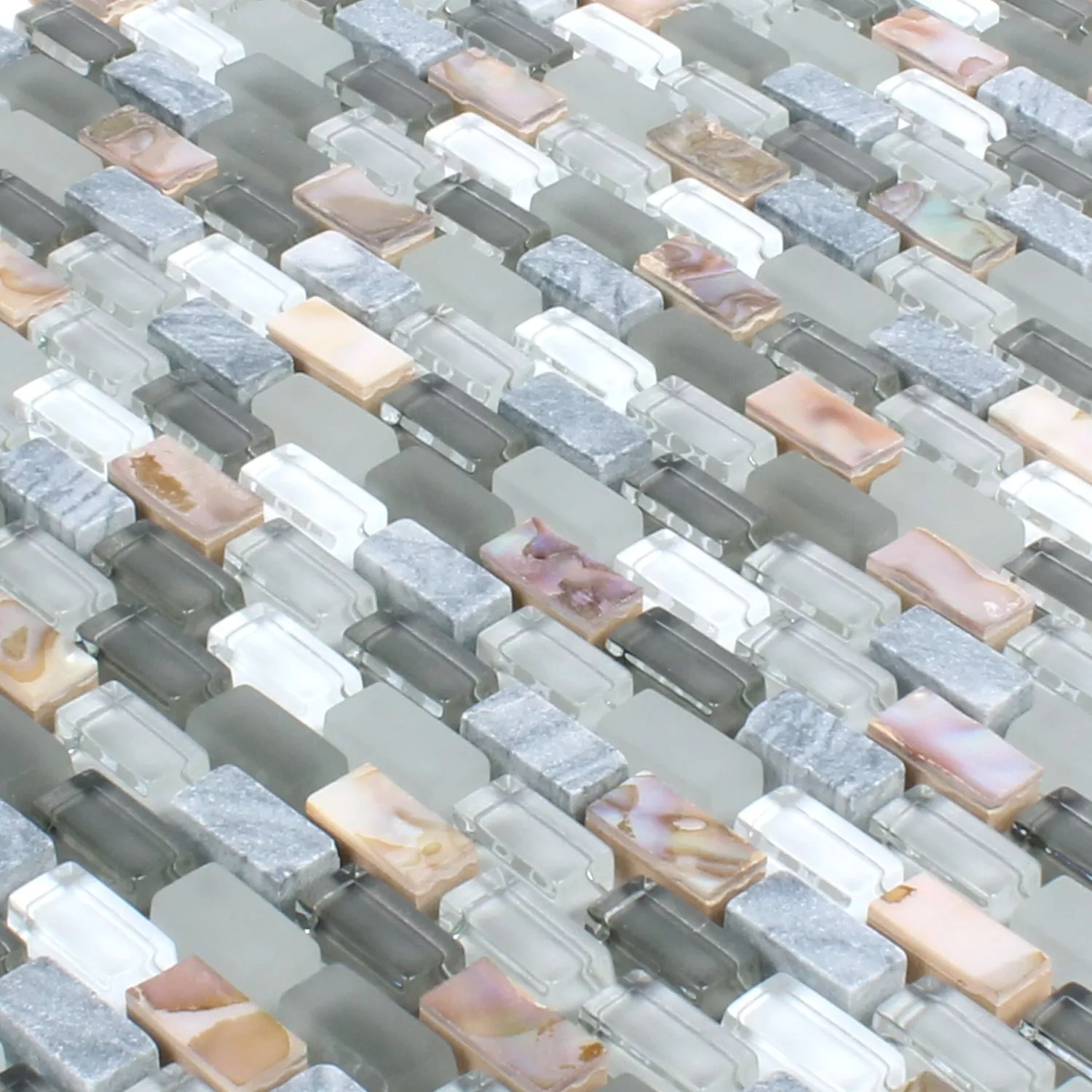 Campione Mosaico Cozze Vetro Pietra Naturale Jasmina Grigio