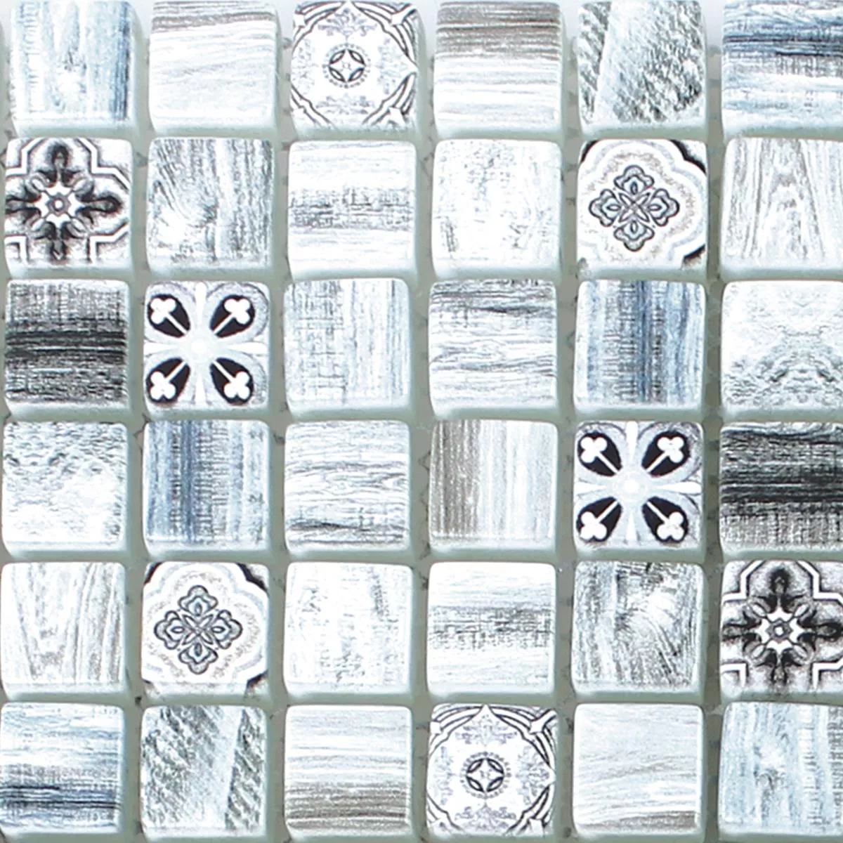 Campione Mosaico Di Vetro Legno Ottica Piastrelle Vision Grigio Blu