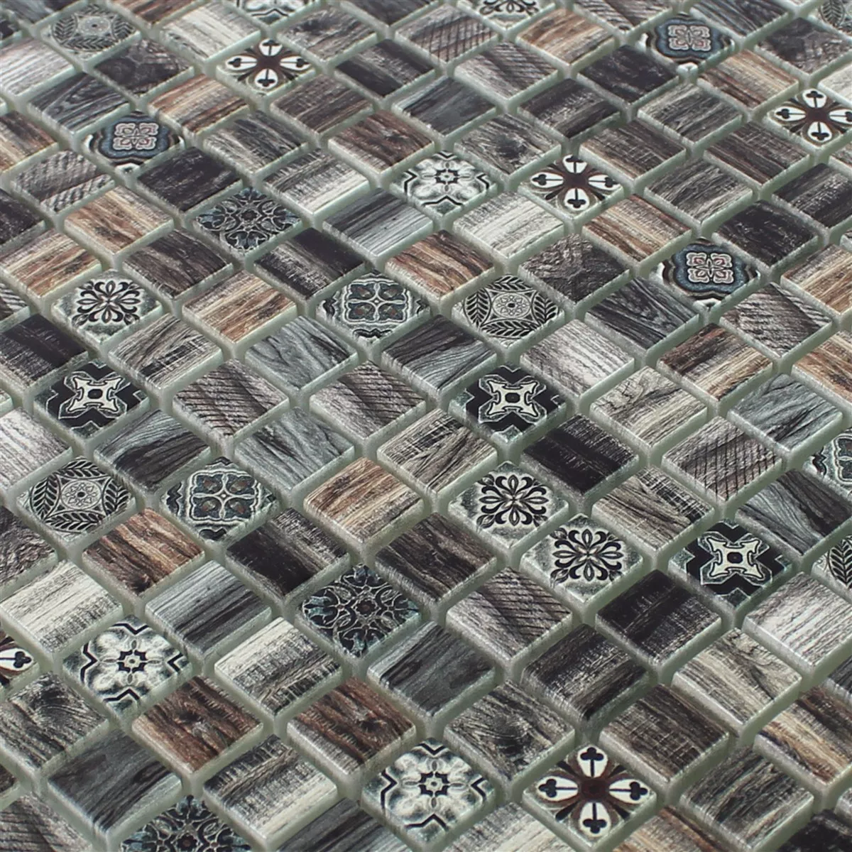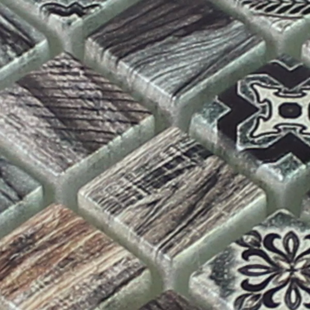 Campione Mosaico Di Vetro Legno Ottica Piastrelle Vision Marrone Scuro