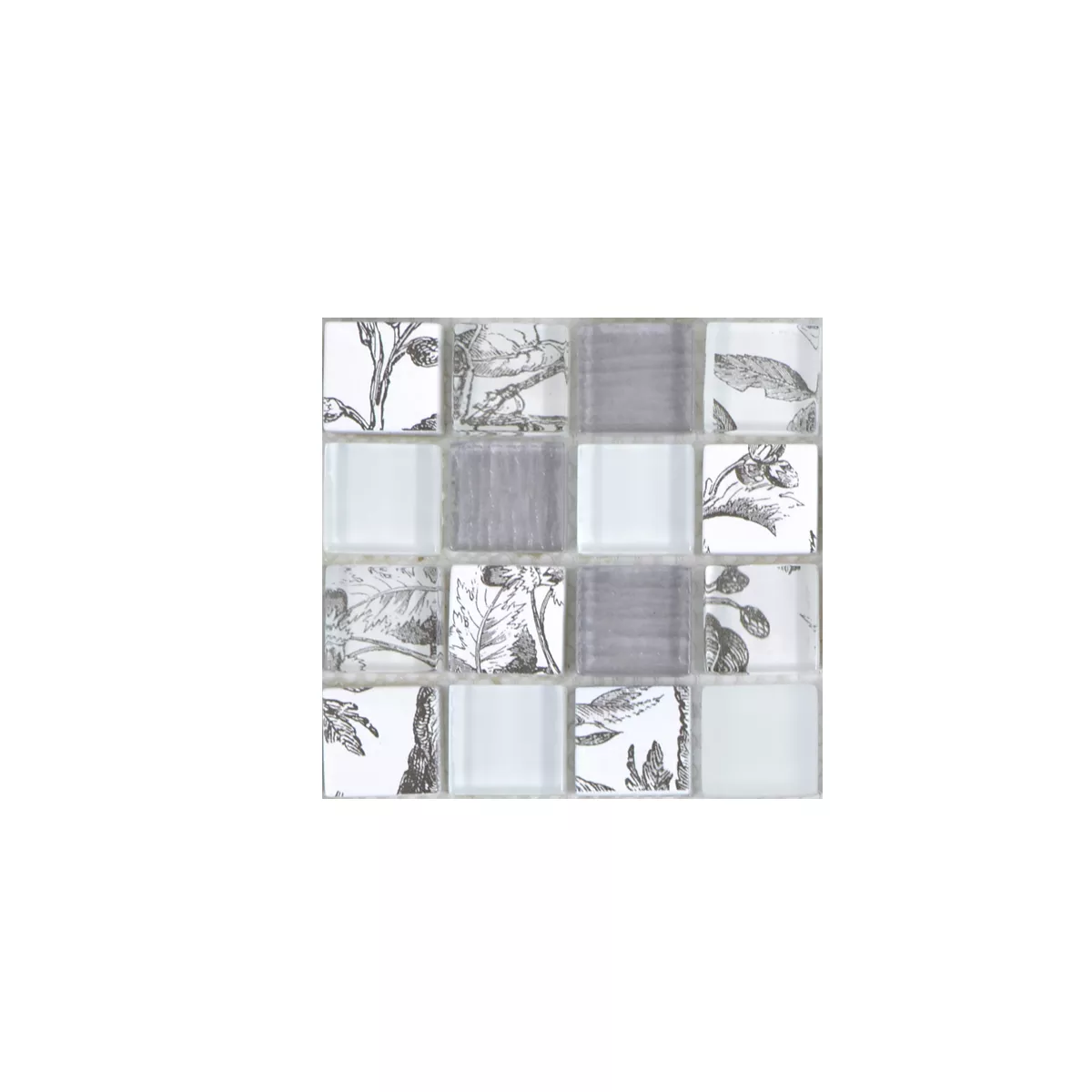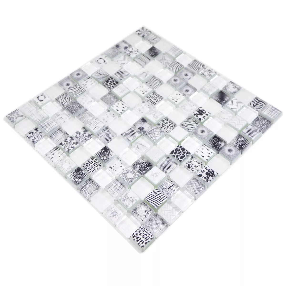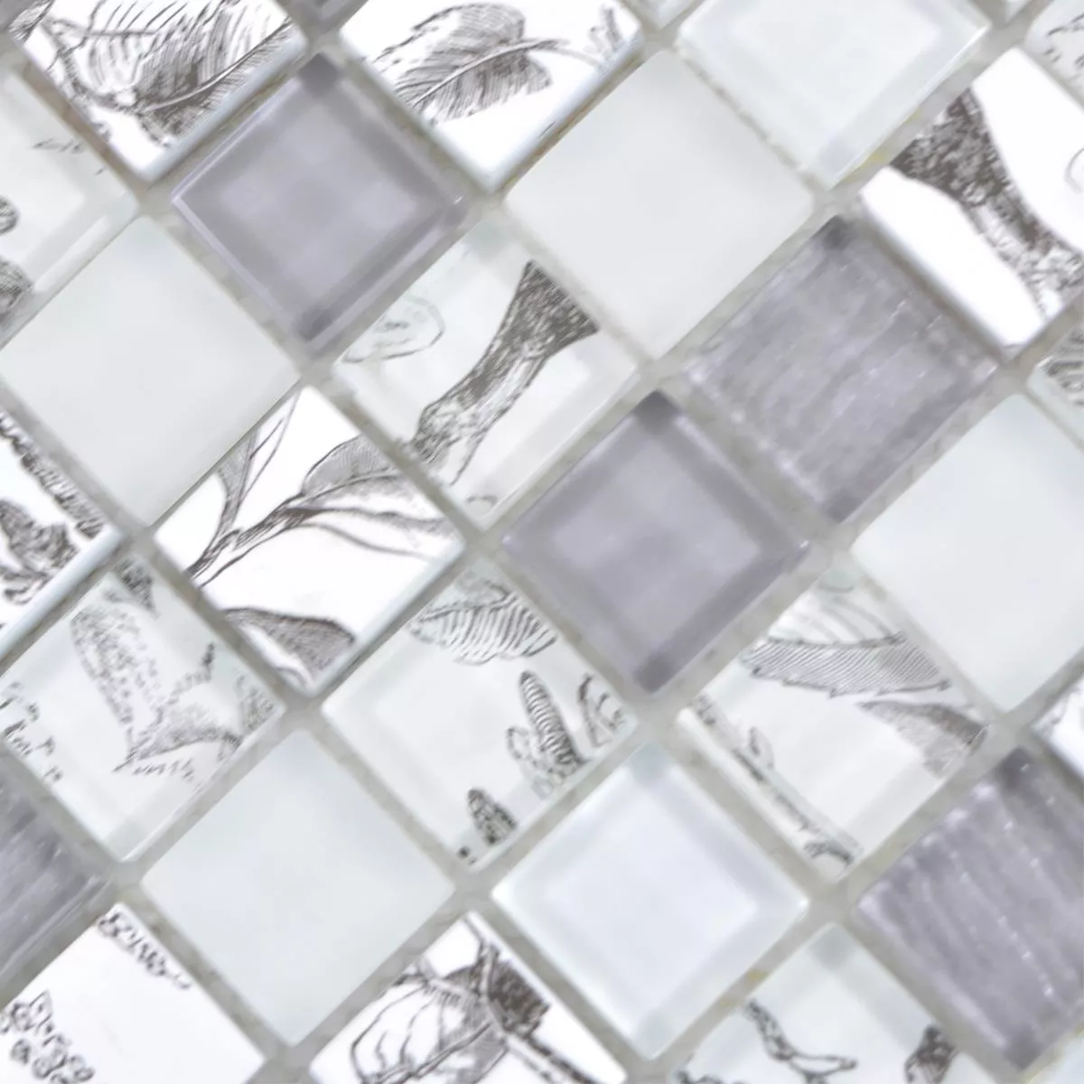 Campione Mosaico Di Vetro Piastrelle Cornelia Ottica Retrò Bianco Grigio