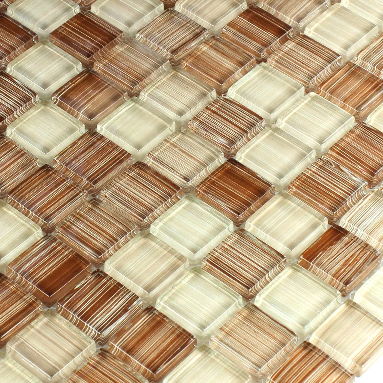 Campione Mosaico Di Vetro Piastrelle Lafayette Marrone Beige Striscia 8mm