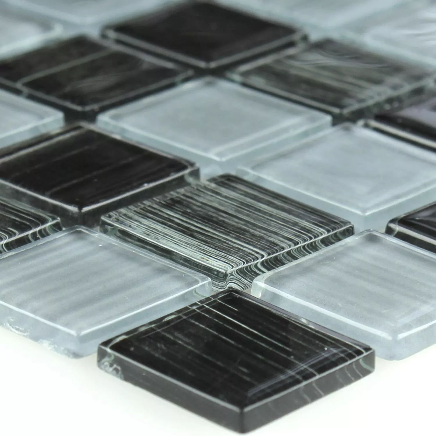 Campione Mosaico Di Vetro Piastrelle Lafayette Nero Grigio Striscia