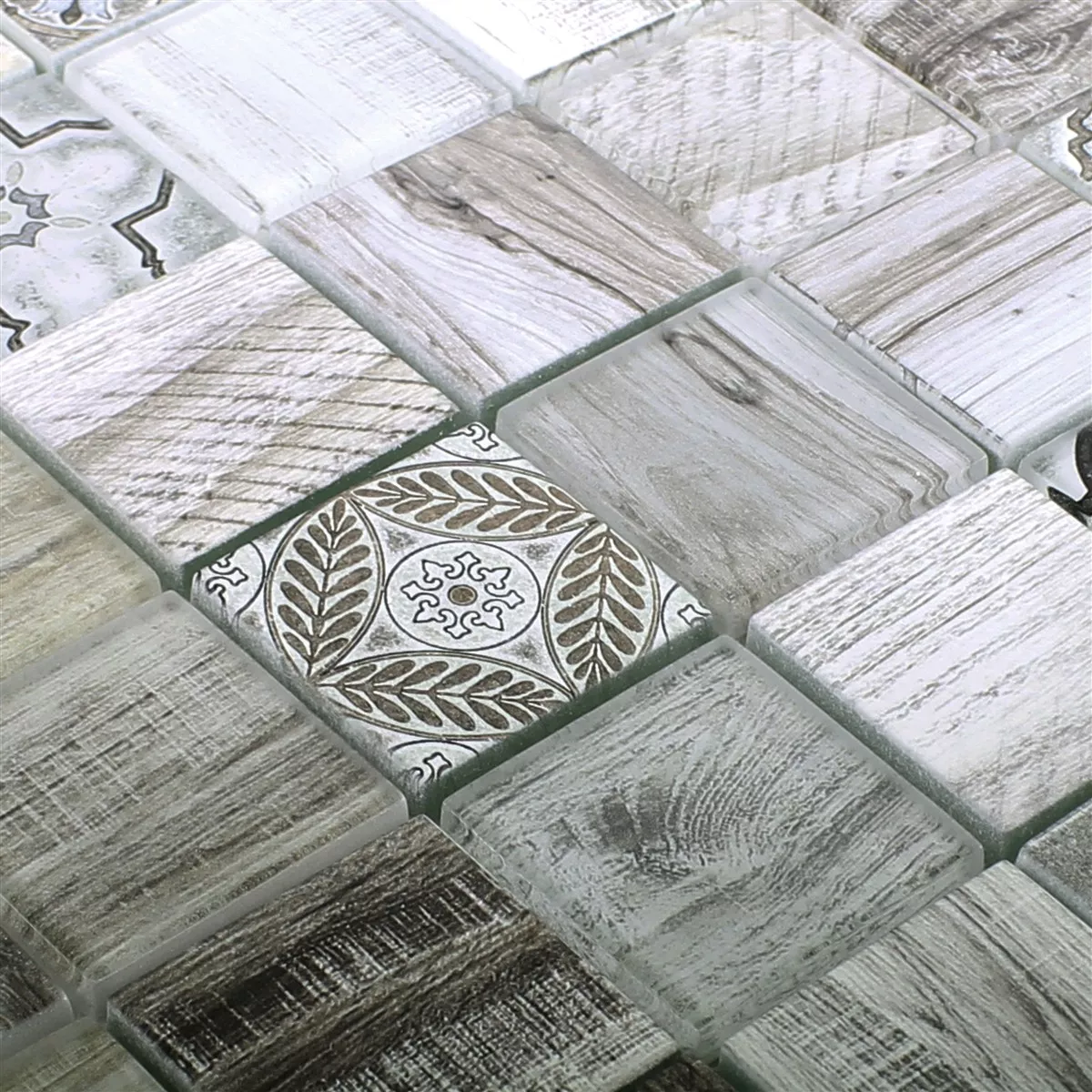 Campione Mosaico Di Vetro Piastrelle Legno Ottica Makarska Beige