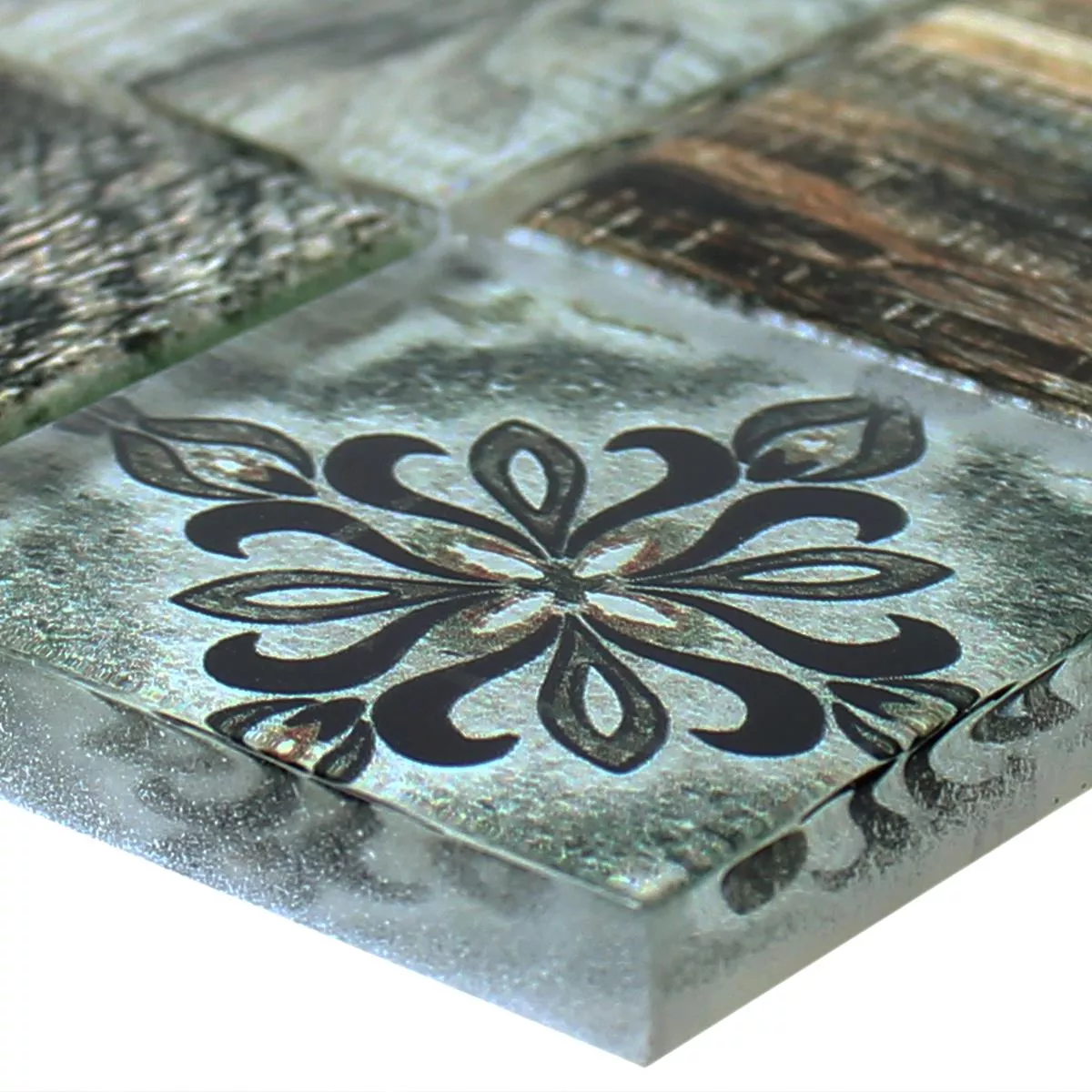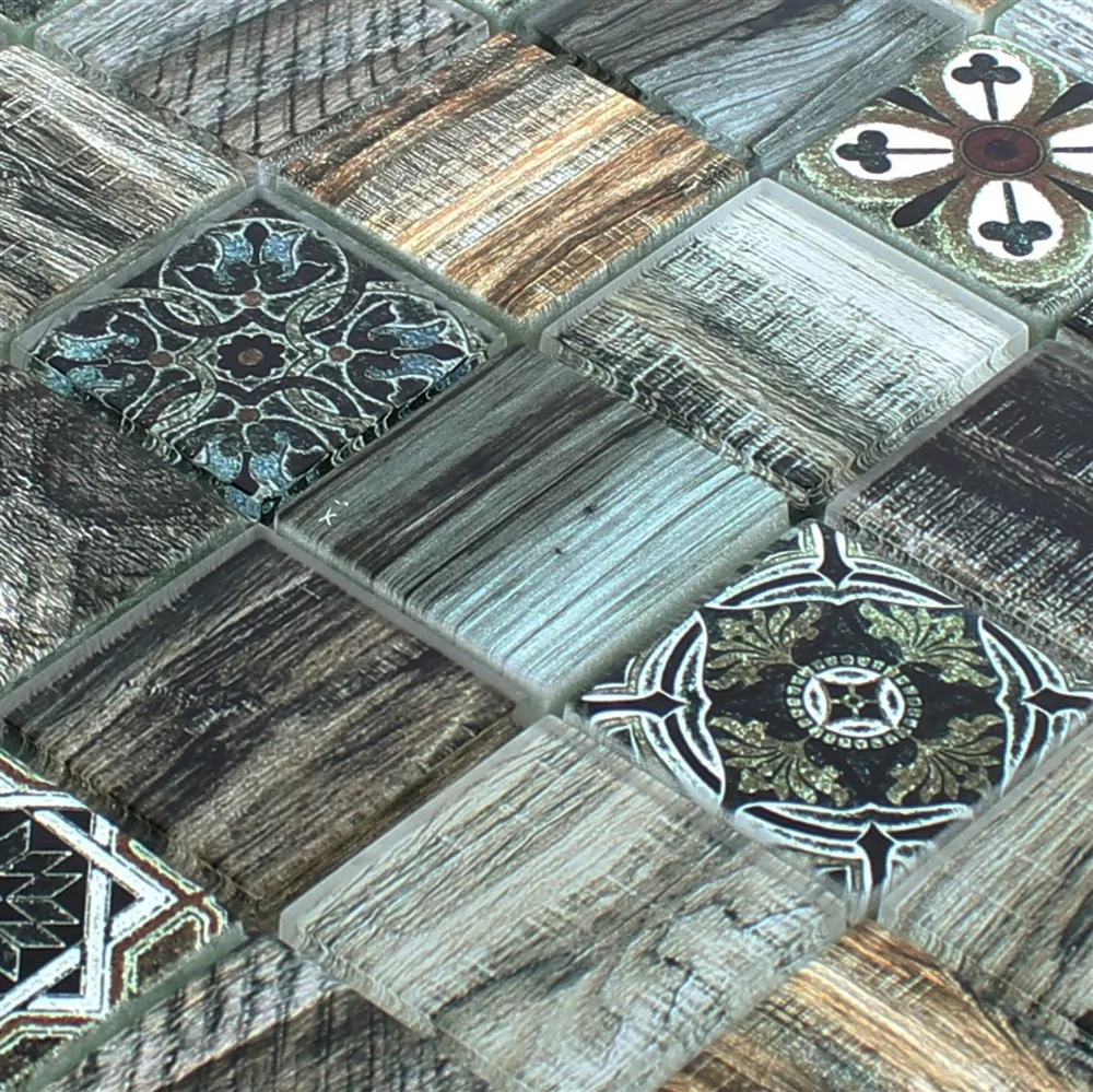 Campione Mosaico Di Vetro Piastrelle Legno Ottica Makarska Marrone Verde