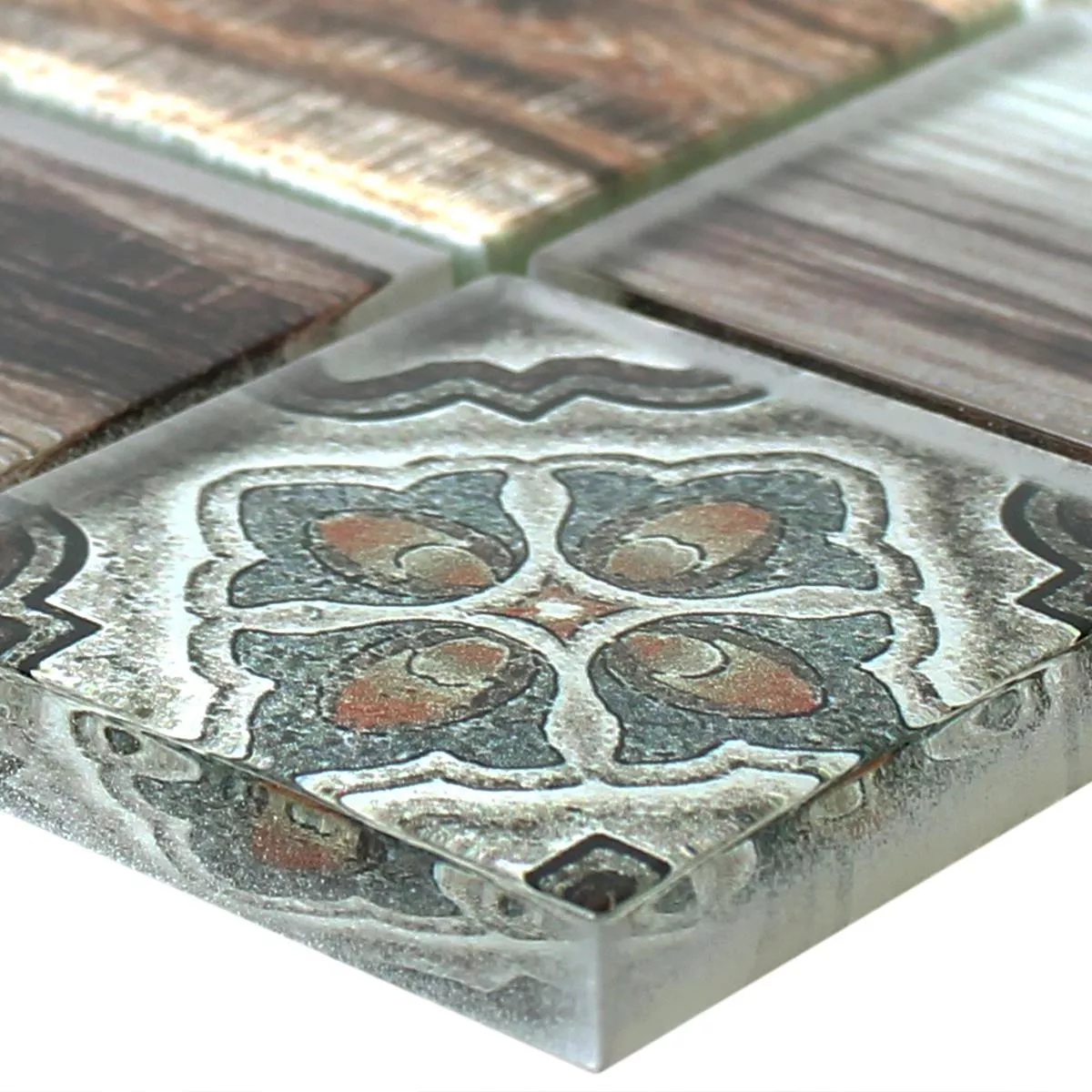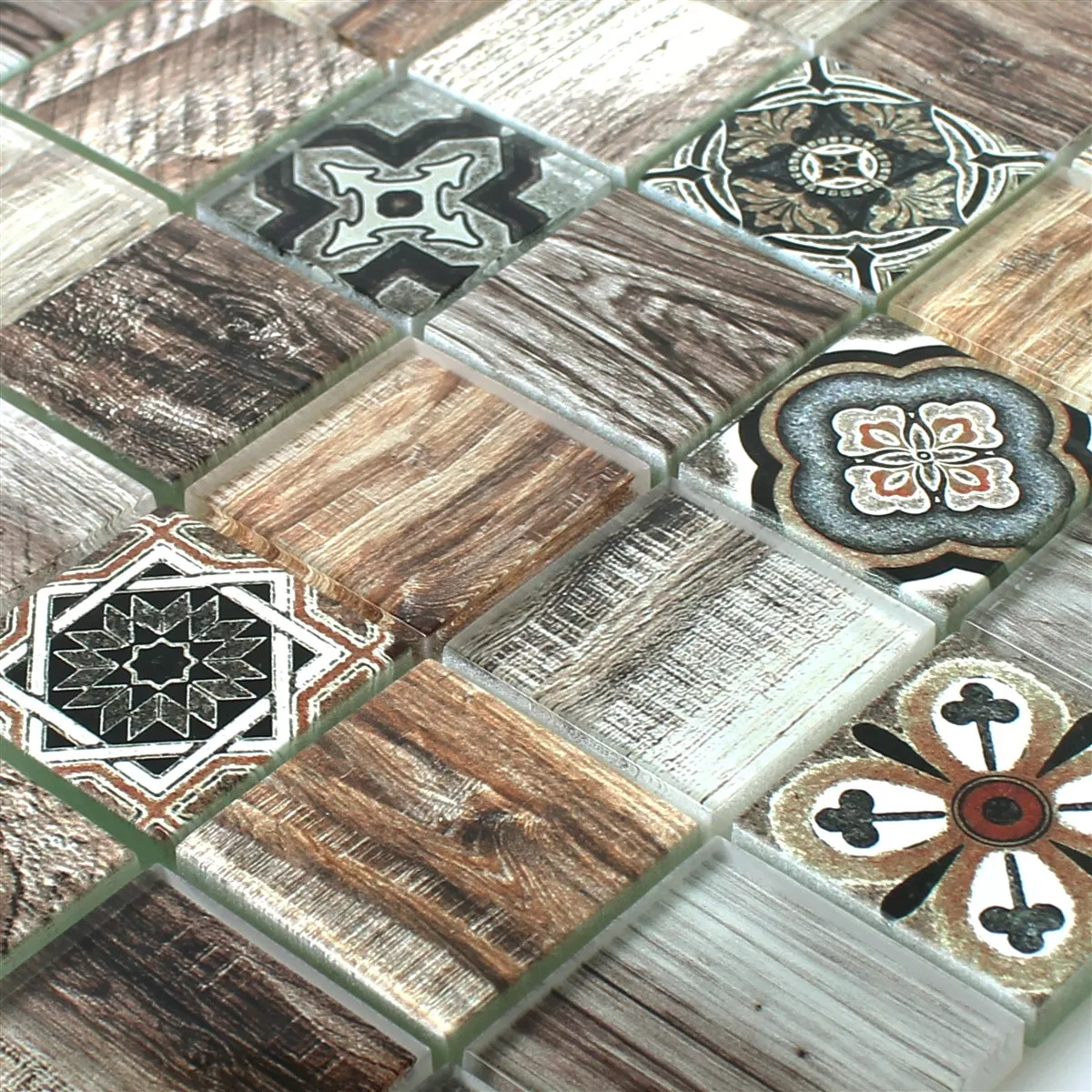 Campione Mosaico Di Vetro Piastrelle Legno Ottica Makarska Marrone
