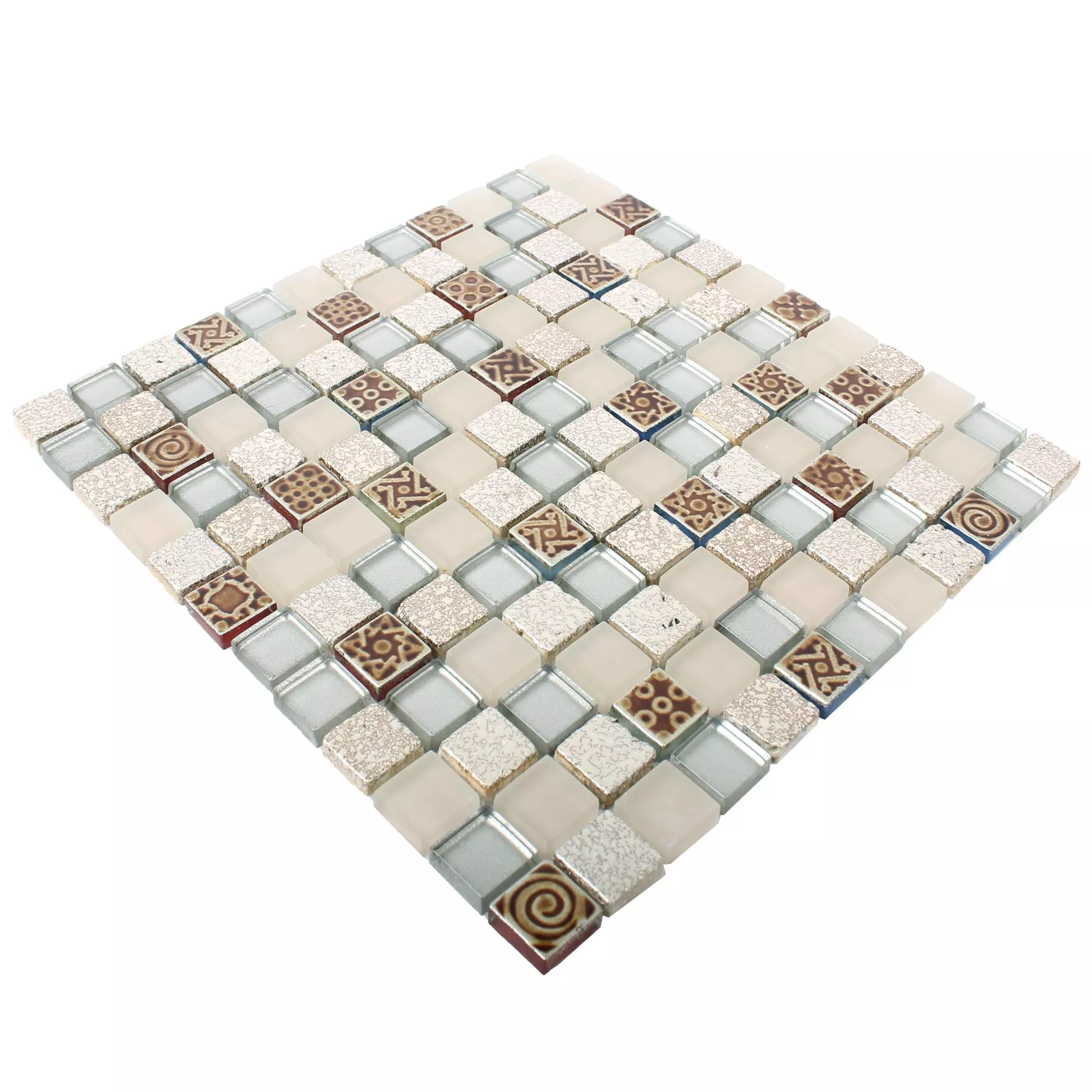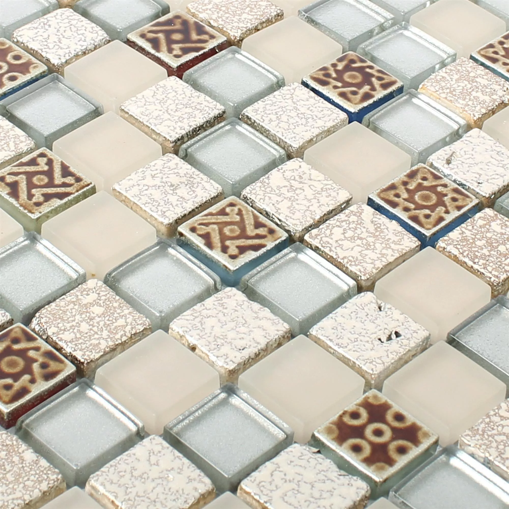 Campione Mosaico Di Vetro Pietra Naturale Piastrelle Kobold Beige Argento