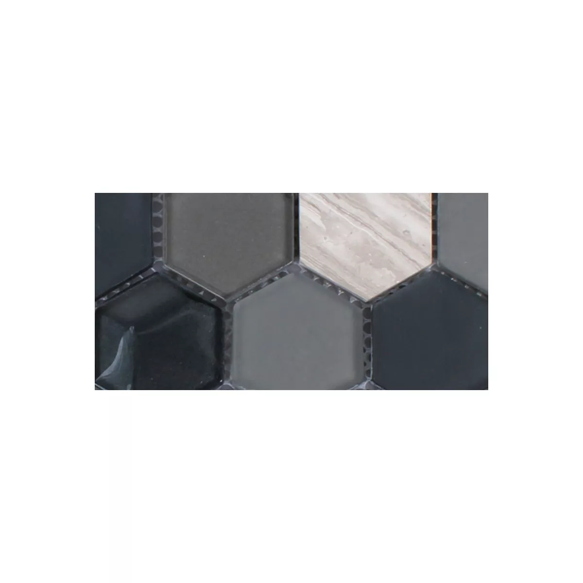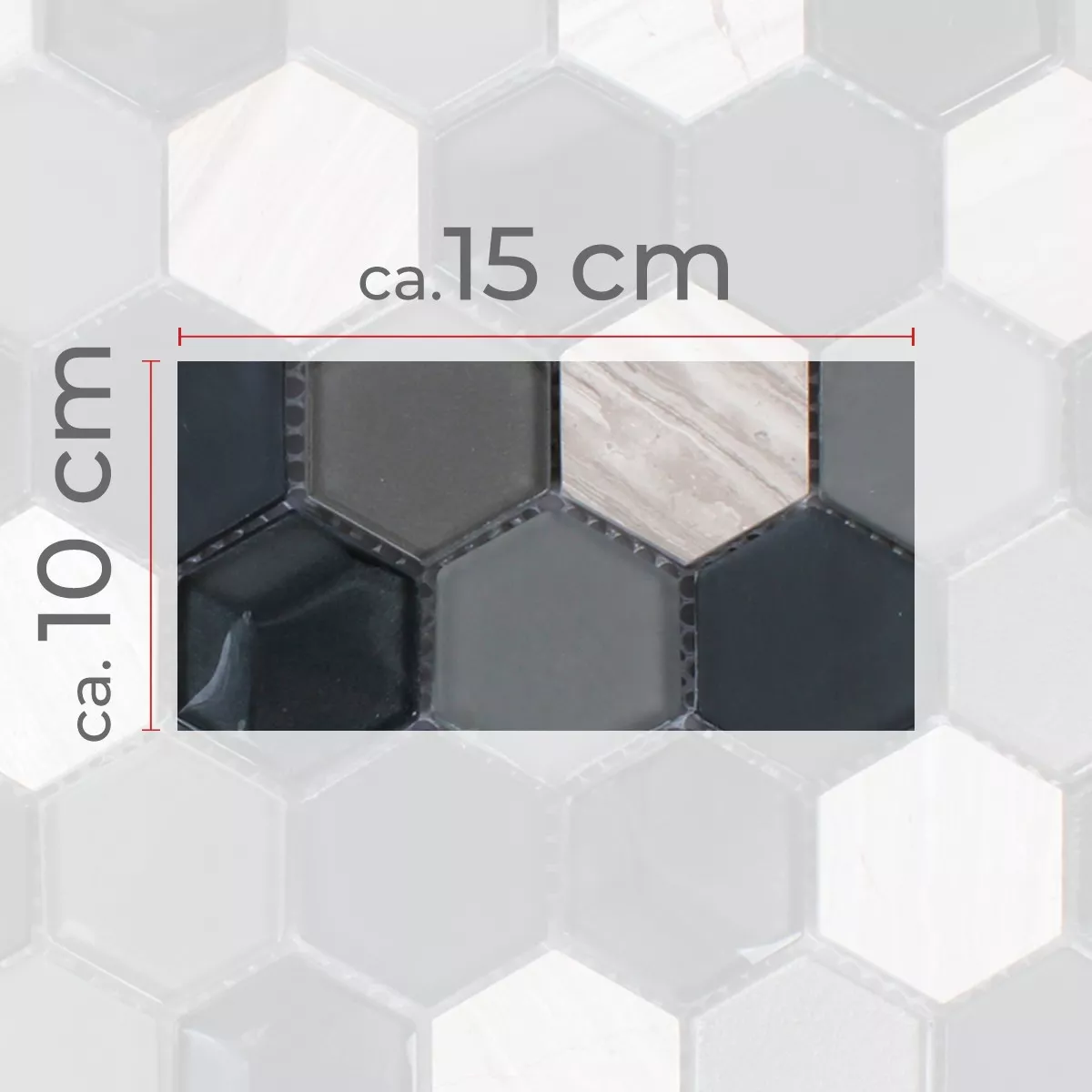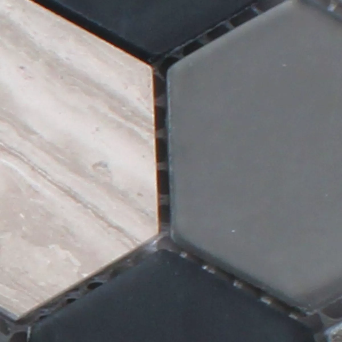 Campione Mosaico Esagono Vetro Pietra Naturale Nero Grigio 3D