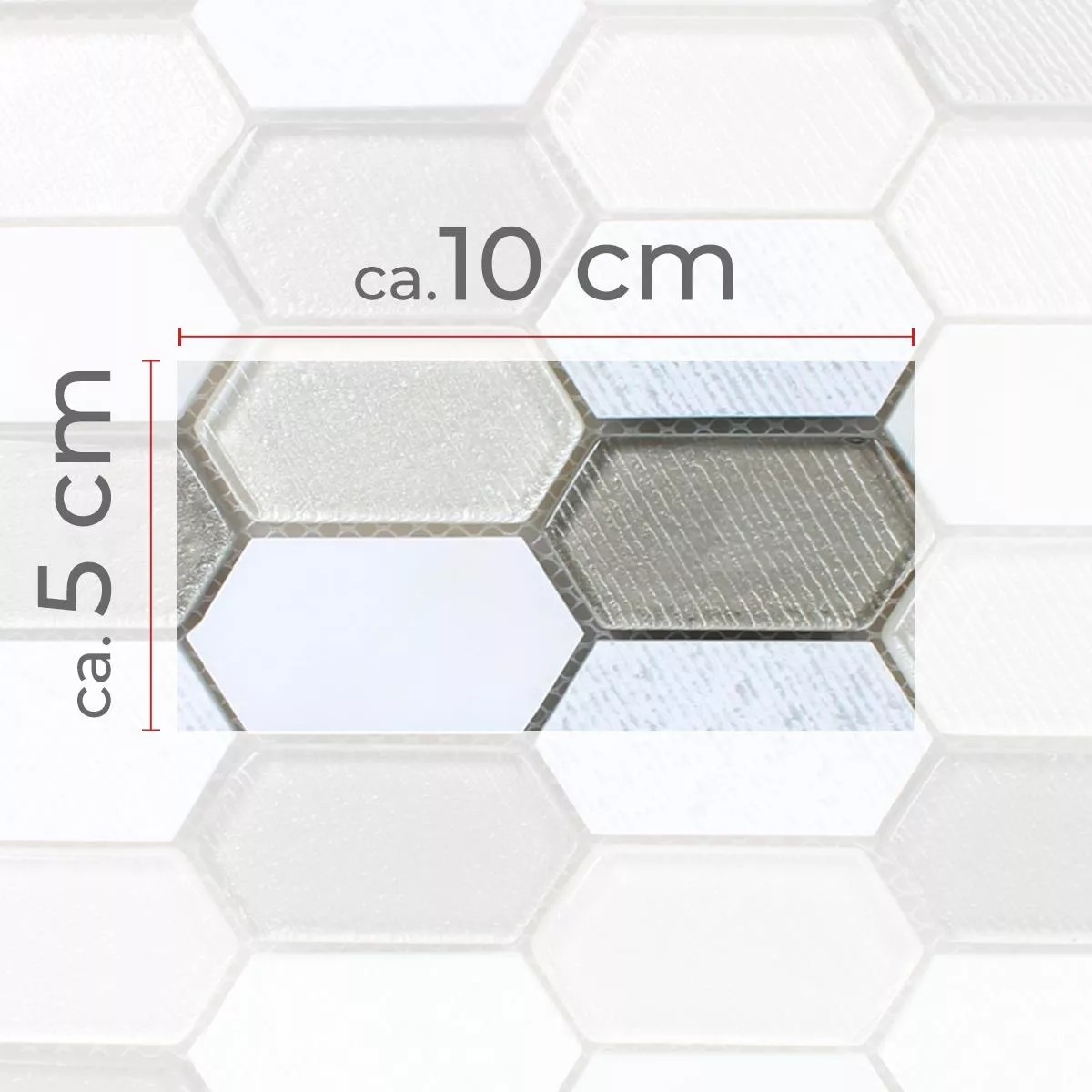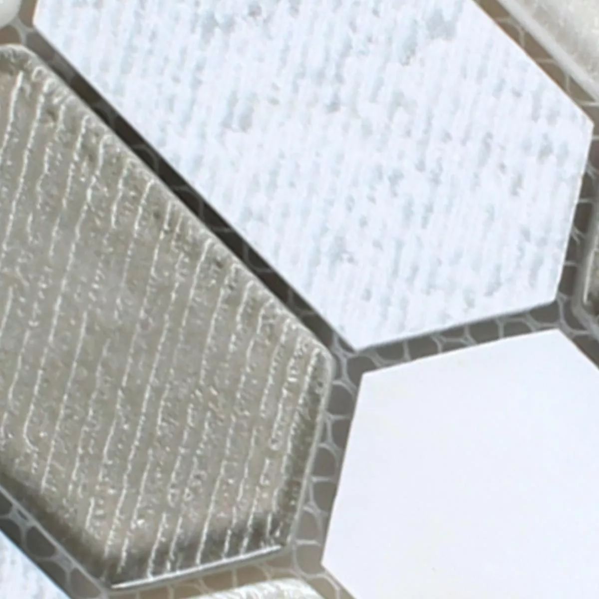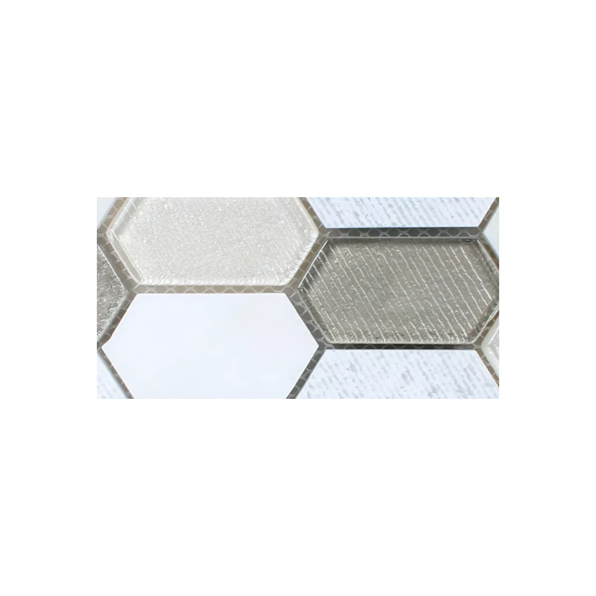 Campione Mosaico Februata Hexagon Bianco Beige Grigio