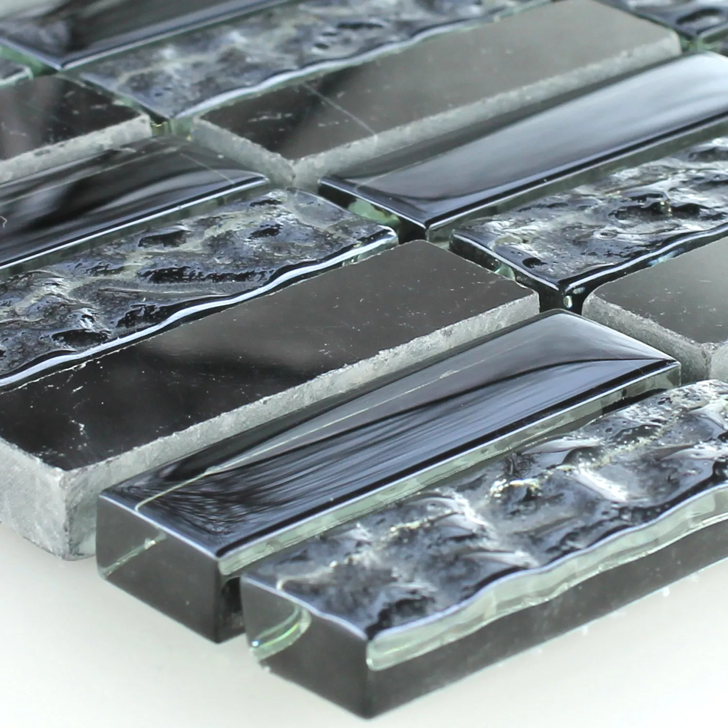 Campione Mosaico Vetro Marmo Nero Scanalata