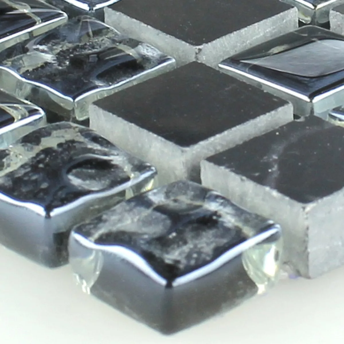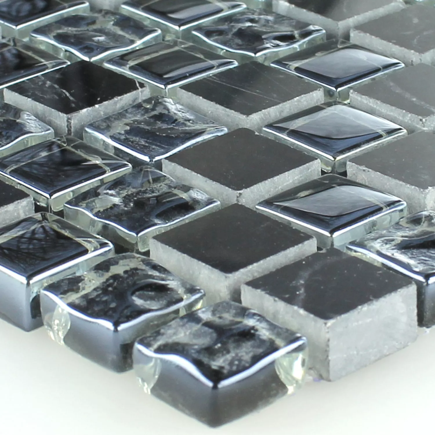 Campione Mosaico Vetro Marmo Pietra Naturale Nero Scanalata
