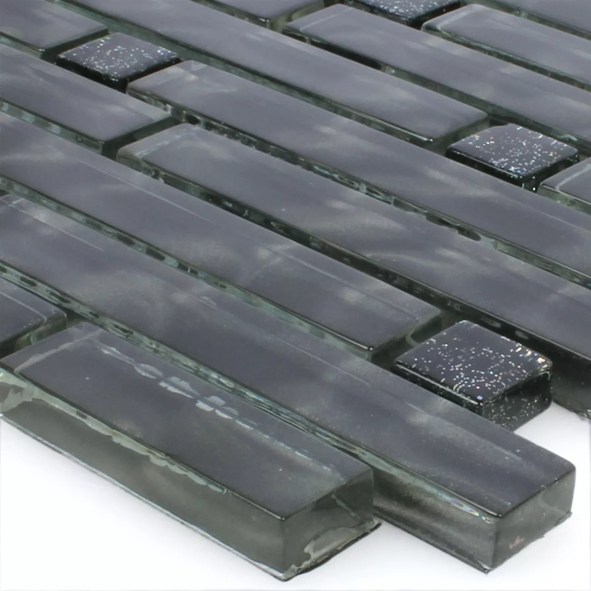 Campione Mosaico Vetro Piastrella Villach Nero Luccichio Uni