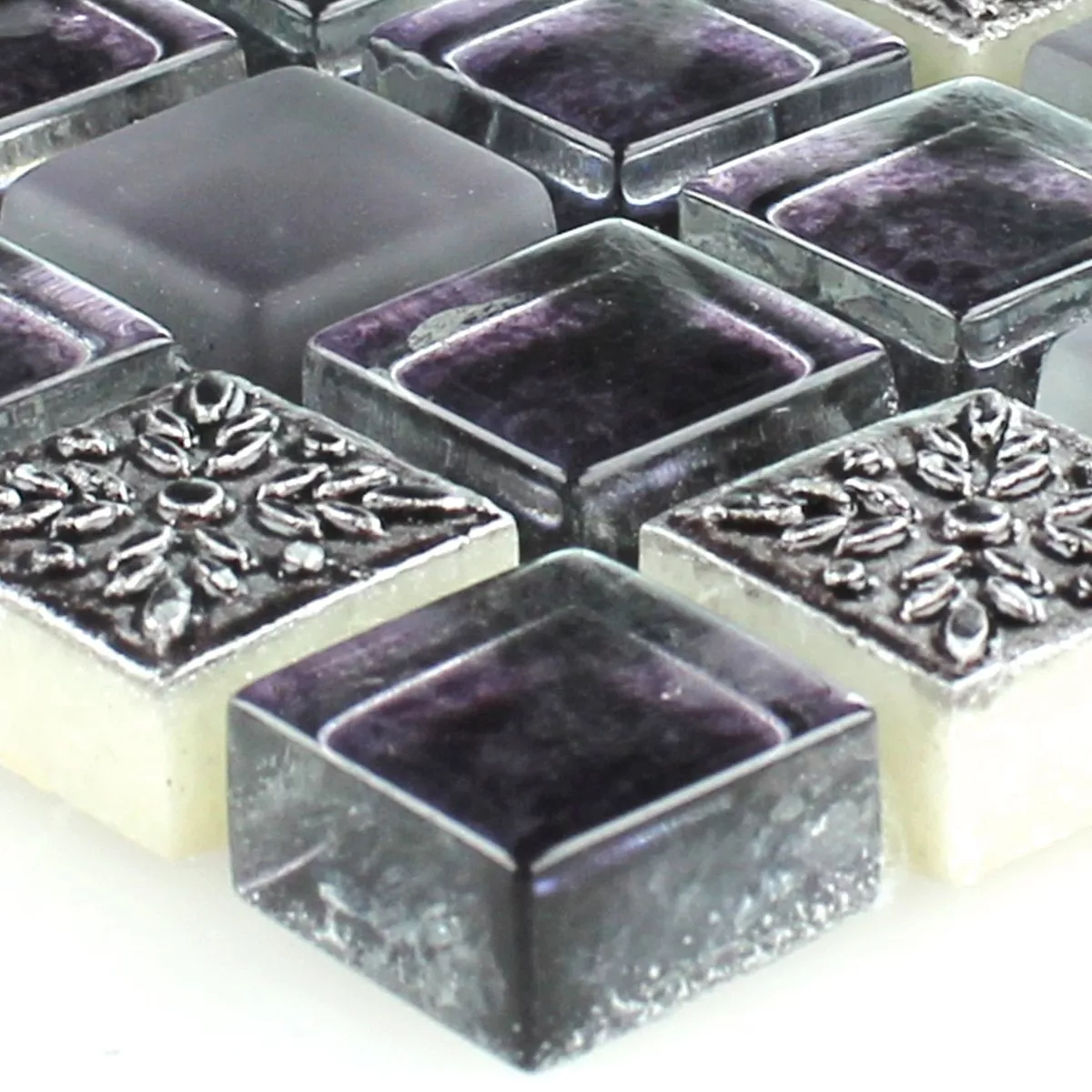 Campione Mosaico Vetro Pietra Naturale Ornamento Porpora Mix