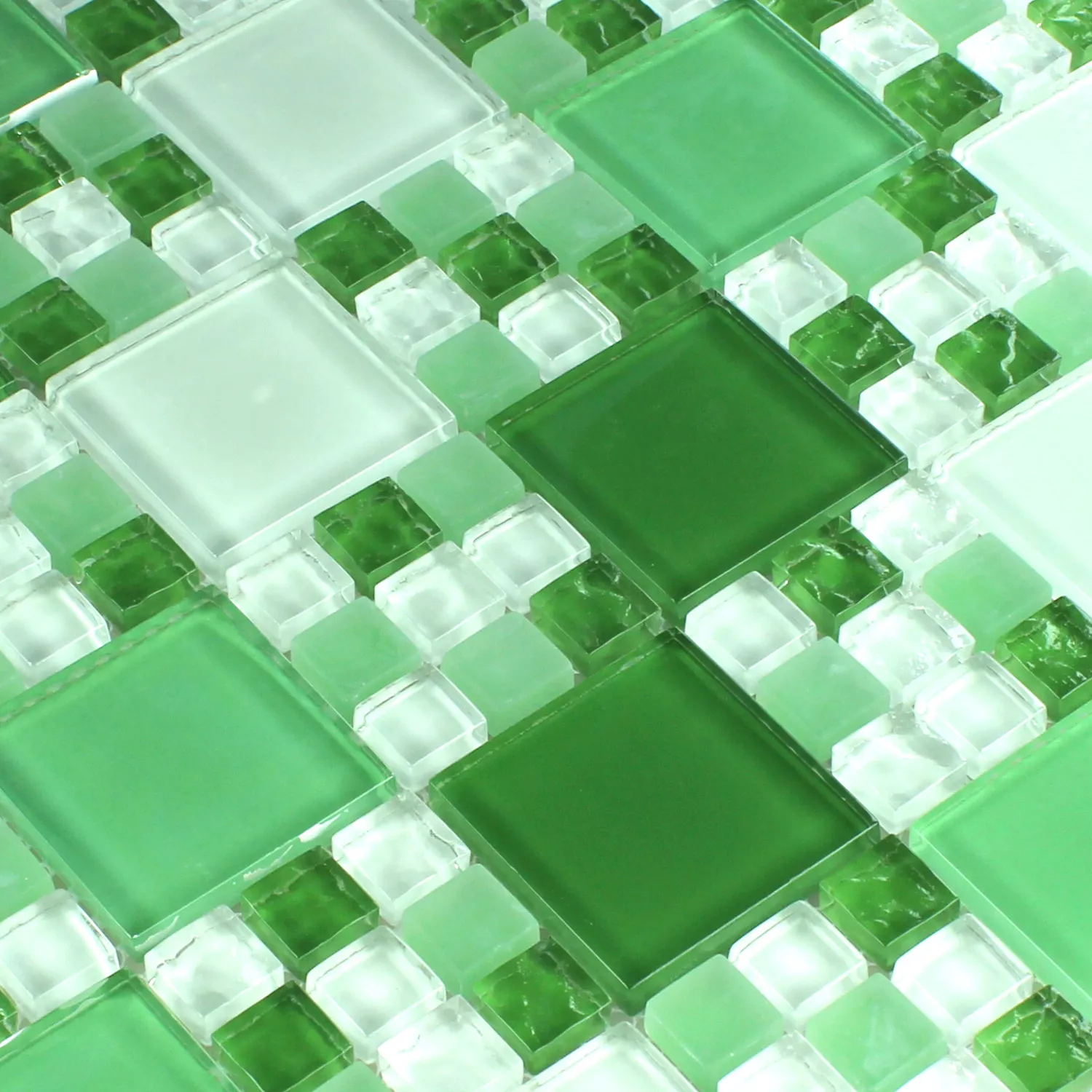 Le moderne piastrelle a mosaico Aloha in Crystal Green Mix trasformano la stanza in una vera oasi di benessere e rappresentano lo spirito moderno dei tempi. La superficie opaca o lucida dei rivestimenti e le numerose opzioni di design del mosaico di vetro aprono prospettive completamente nuove quando si tratta di dare alla stanza quel qualcosa in più. In bagno, in cucina o nell'ingresso: un mosaico decorativo in vetro con le piastrelle Aloha ha un aspetto elegante, moderno e unisce stile e funzionalità. Gli esclusivi rivestimenti Aloha possono essere disposti secondo le idee individuali e abbelliscono così la stanza e le conferiscono il suo carattere distintivo. Le eleganti piastrelle a mosaico colpiscono per la loro moderna combinazione di colori.