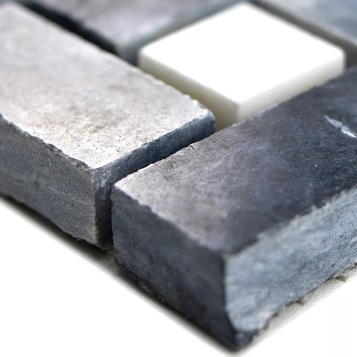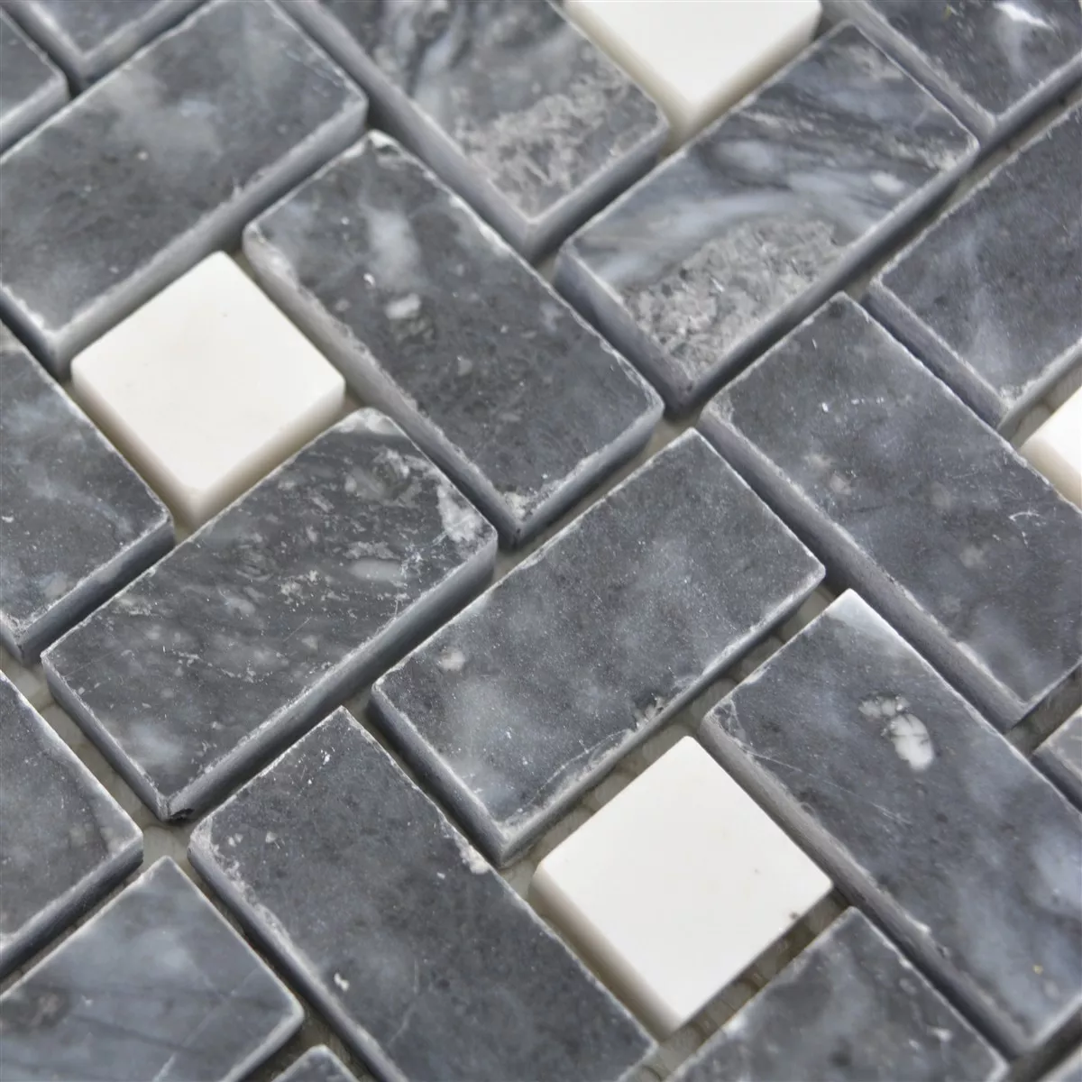 Campione Pietra Naturale Marmo Mosaico Umay Nero Bianco