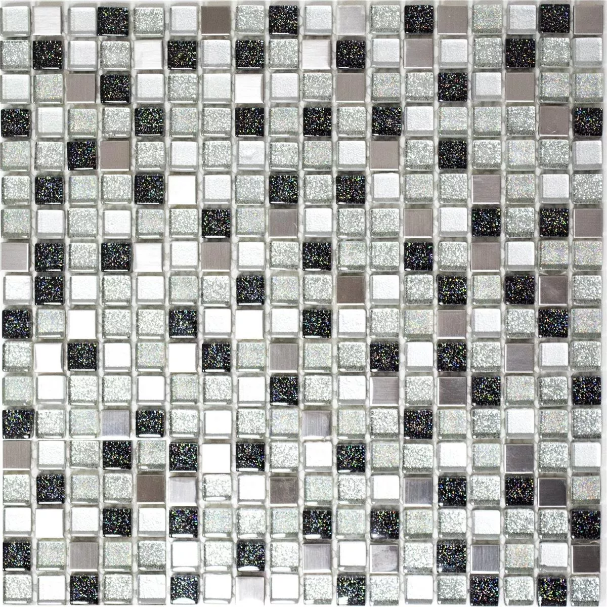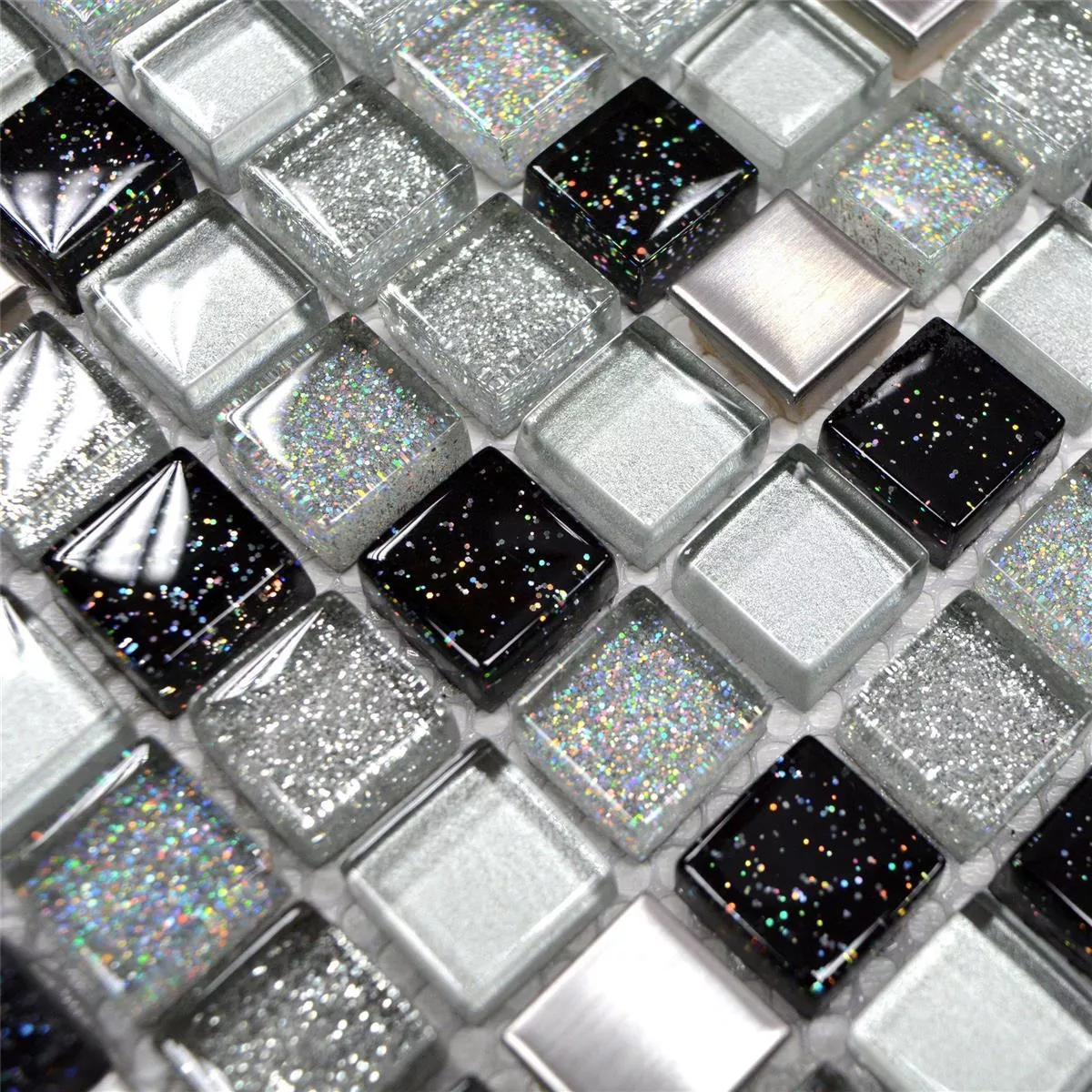 Campione Vetro Metallo Metall Mosaico Argento Nero