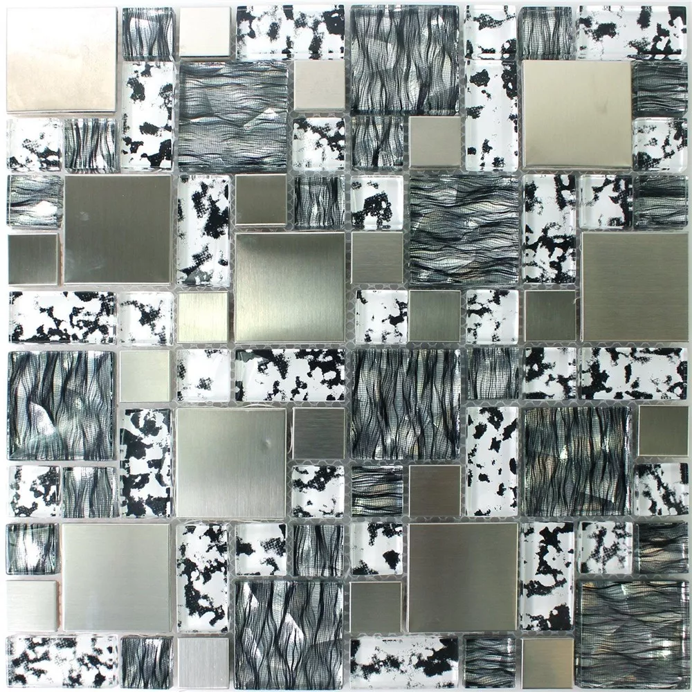 Campione Vetro Metallo Mosaico Rio Nero Argento Bianco