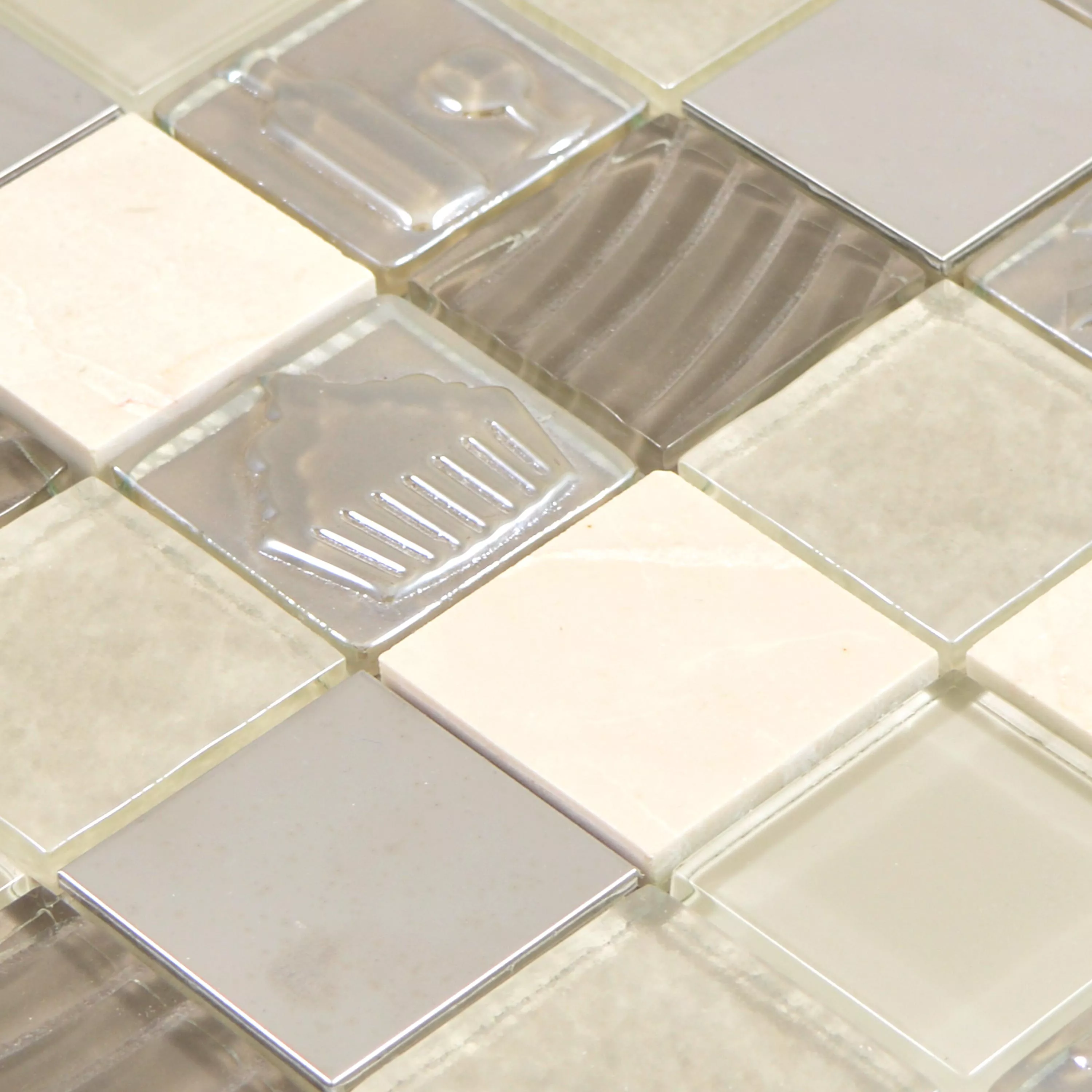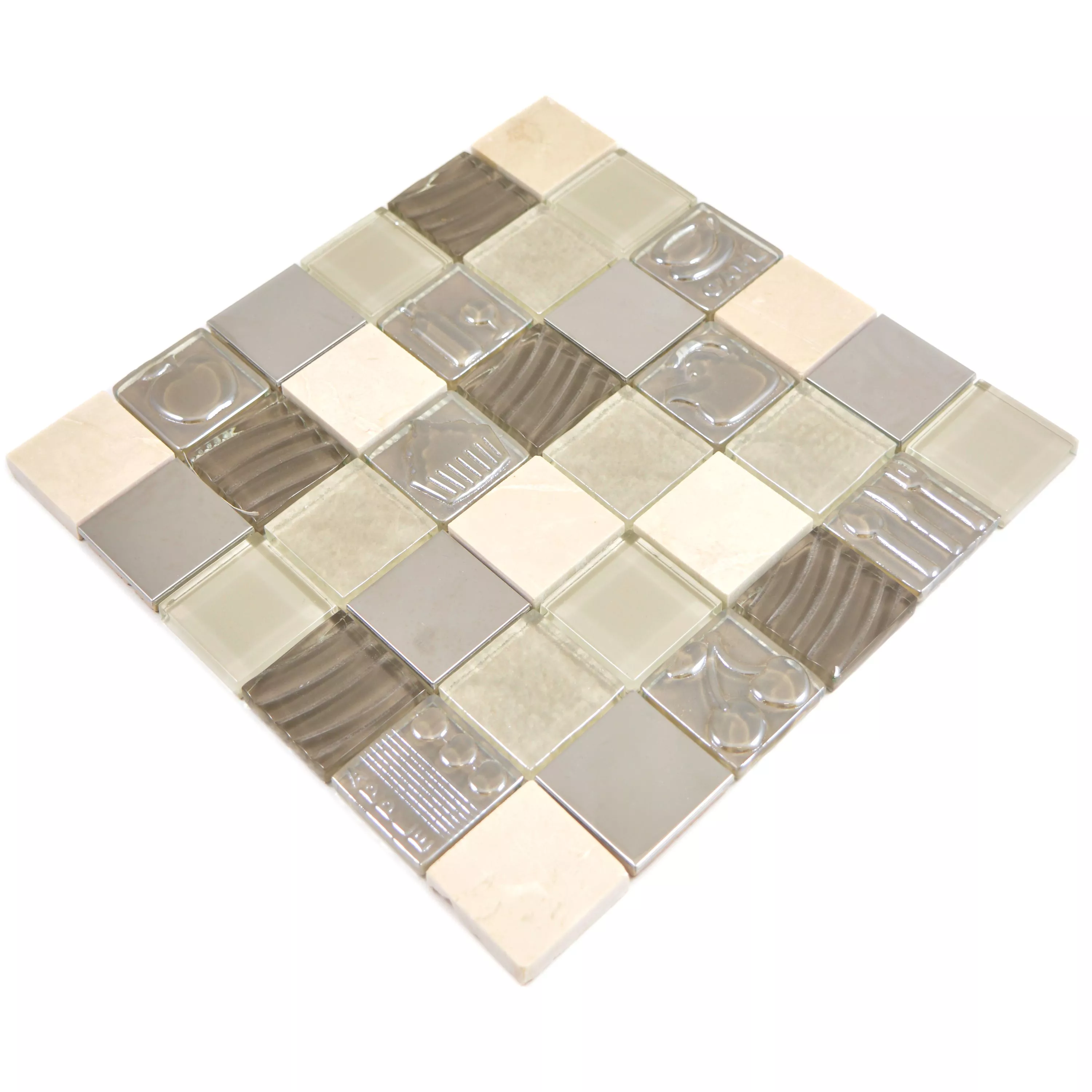 Campione Vetro Metallo Pietra Naturale Mosaico Emporia Marrone Beige Argento