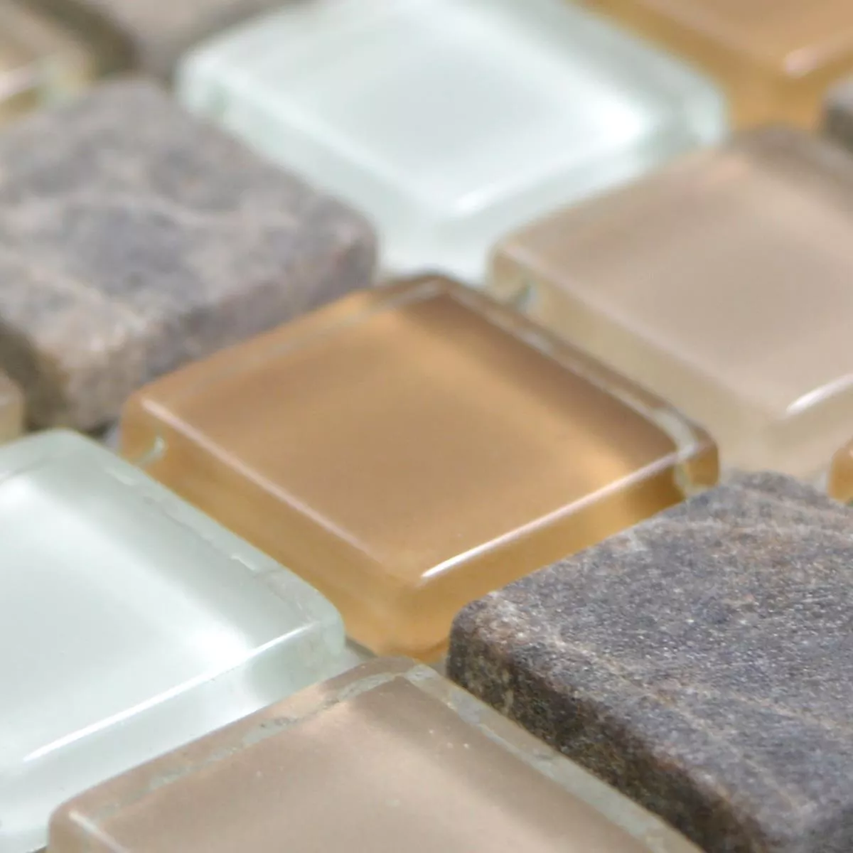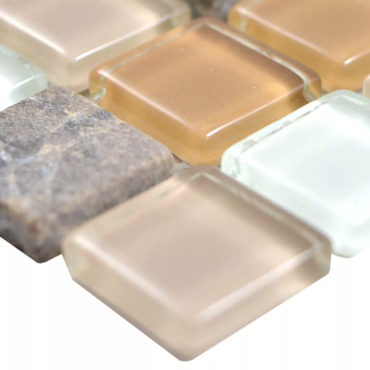 Campione Vetro Pietra Naturale Mosaico Zekova Beige Marrone Bianco