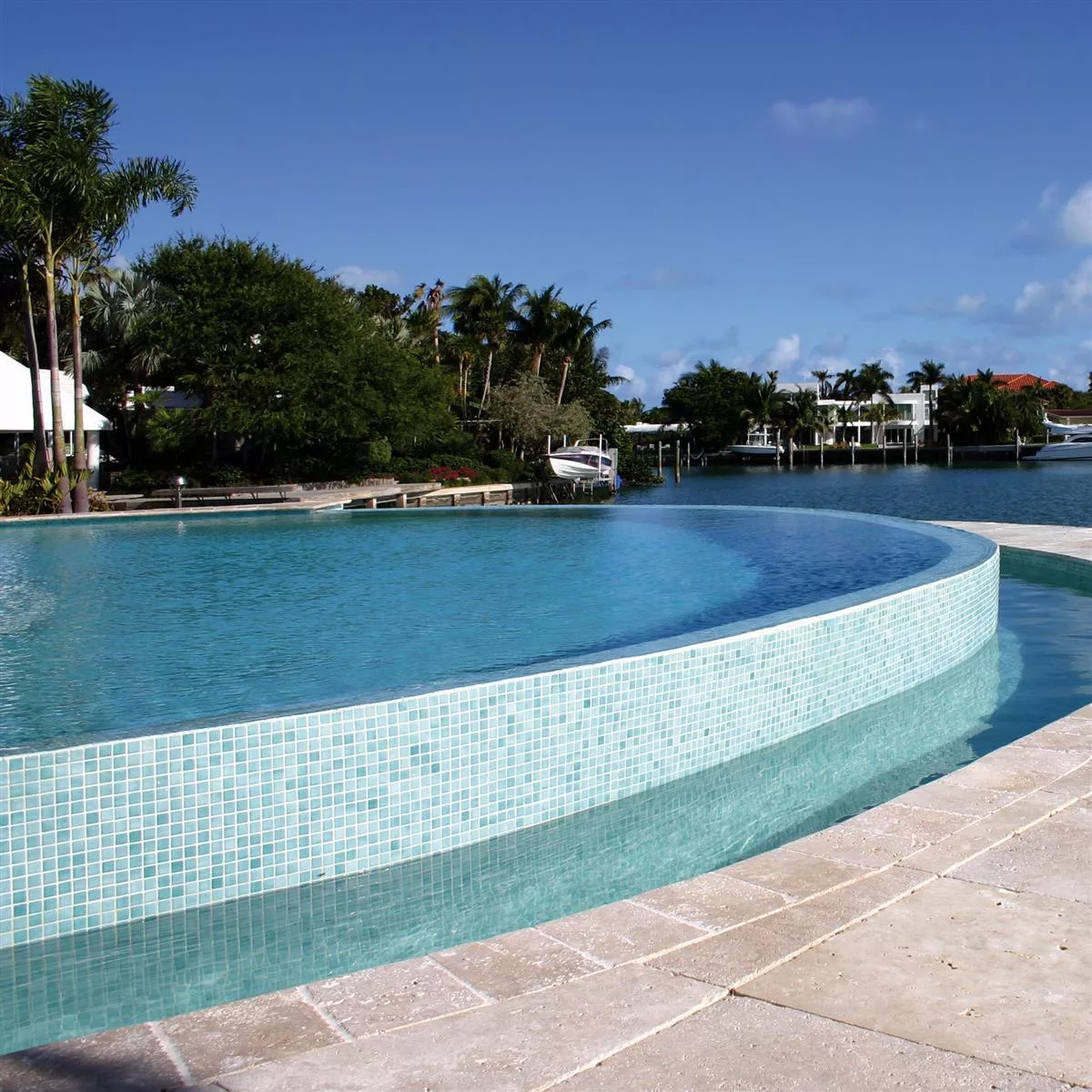 Dentro e intorno alle piscine, dove le piastrelle sono continuamente esposte all'umidità, offrono la resistenza necessaria.