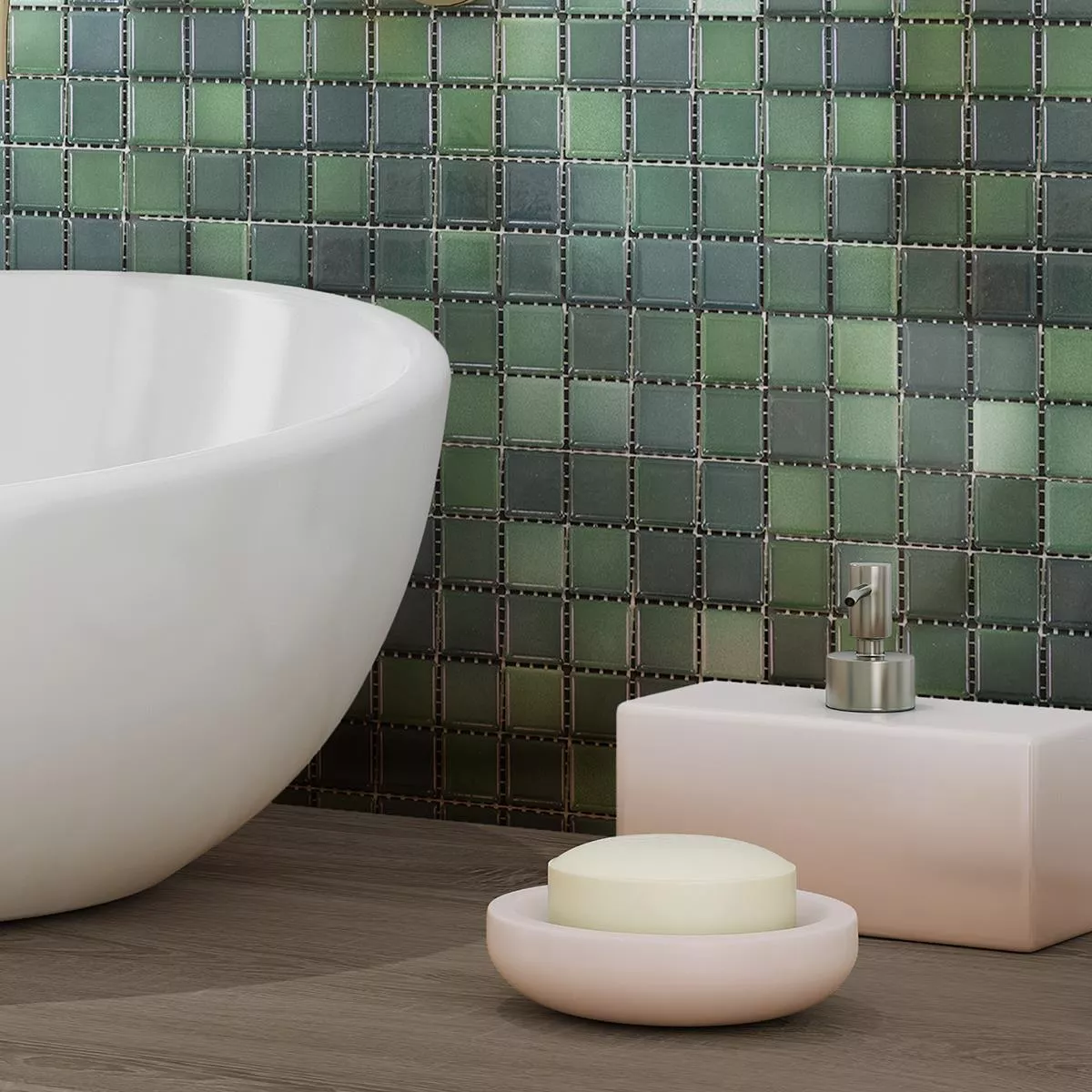Il mosaico in ceramica Galleria in un rinfrescante mix verde dona un tocco unico ai vostri ambienti con il suo elegante aspetto metallico e la superficie opaca. Con la dimensione della pietra di 23 x 23 mm e il tappetino per piastrelle di 29,7 x 29,7 cm, già incollato su una rete pronta per la posa, la posa sia a parete che a pavimento diventa un compito semplice e preciso.
