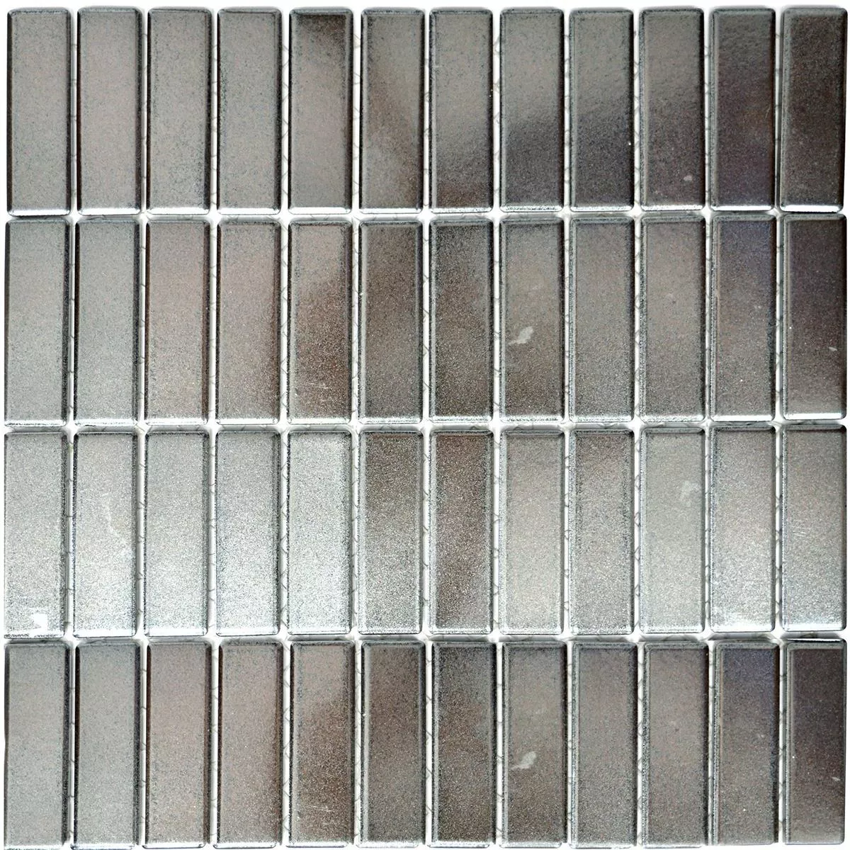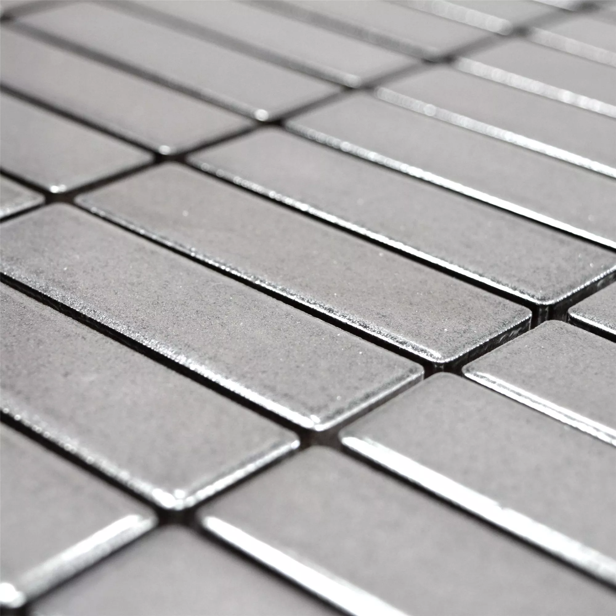 Con uno spessore di 6,5 mm e una larghezza delle fughe consigliata di 2,5 mm, le piastrelle sono facili da lavorare e offrono molte opzioni di progettazione. La superficie opaca contribuisce a un design d'interni contemporaneo, rendendo le tessere di mosaico a bastoncini argentati Winnetou una scelta eccellente per interni moderni.