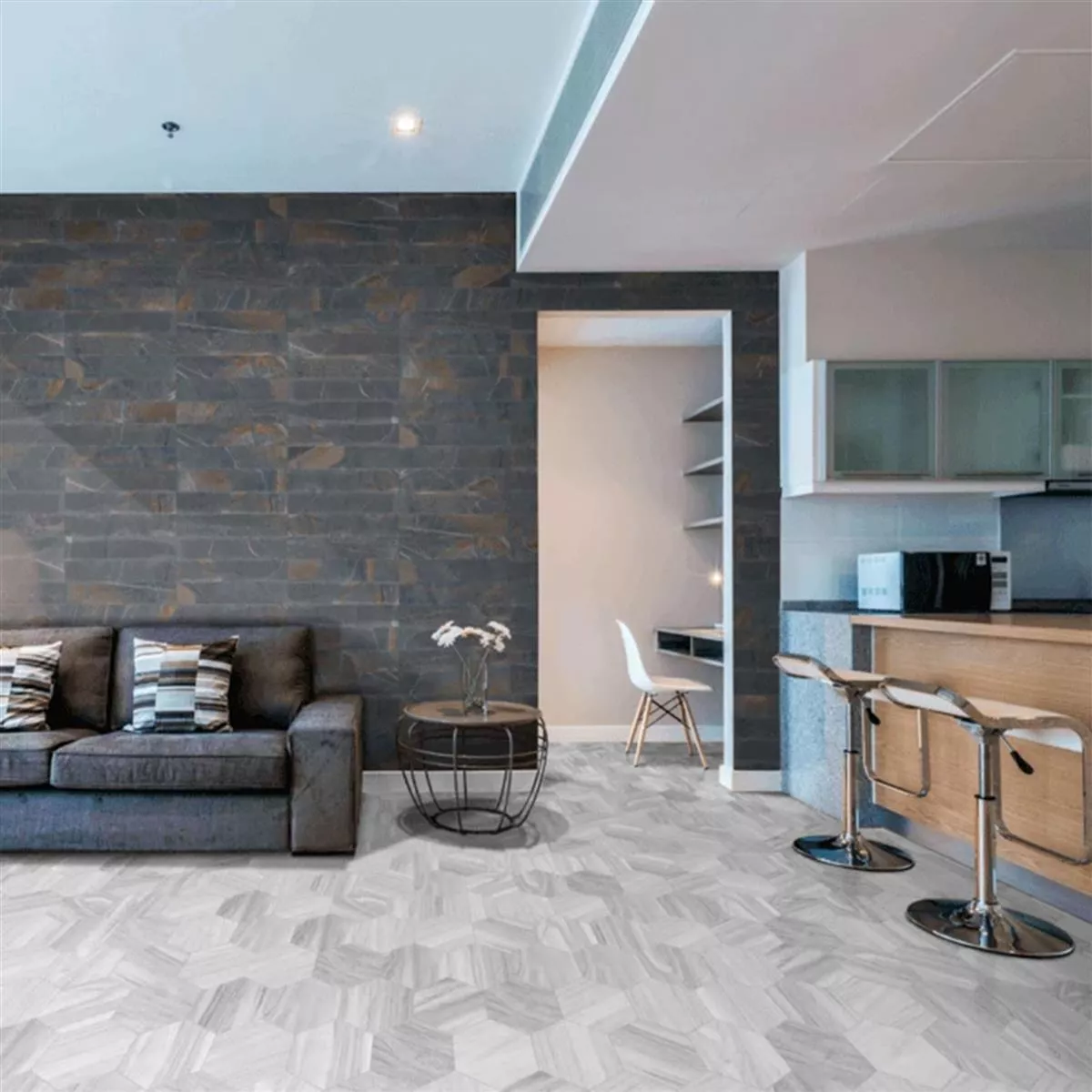 Questi rivestimenti e pavimenti di alta qualità sono adatti anche per il riscaldamento a pavimento, rendendoli la scelta ideale per qualsiasi interno. Che si tratti della cucina, del soggiorno o delle zone umide, le piastrelle Hexwood Hexagon portano nella vostra casa il fascino e il calore del legno, uniti alla resistenza e alla facilità di manutenzione del gres porcellanato.