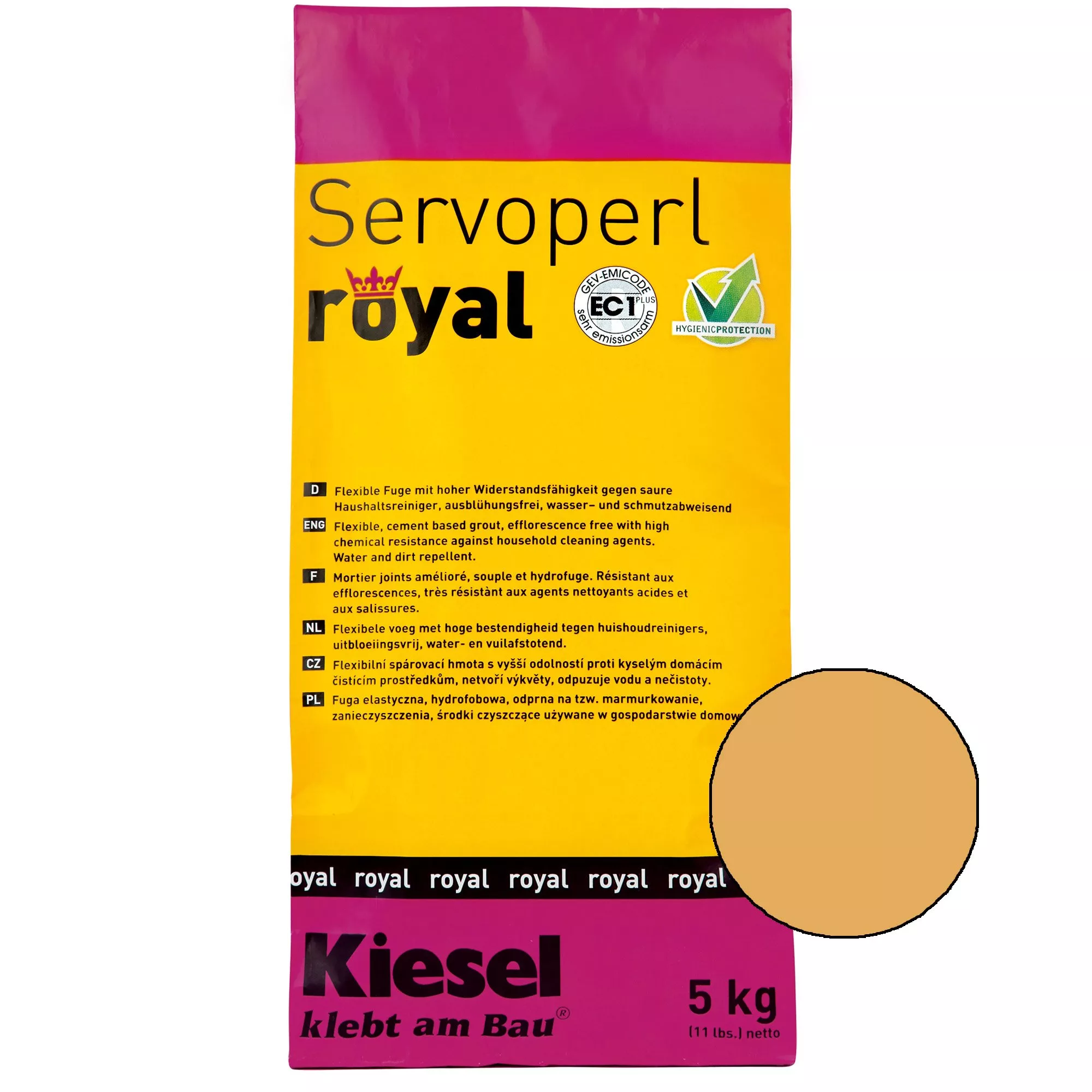 Kiesel Servoper royal è una malta per giunti ad alta resistenza secondo DIN EN 13888 CG 2 WA. Con il composto cementizio è possibile riempire giunti di larghezza da 1 a 10 mm. Un giunto riceve un'elevata capacità di carico meccanico con