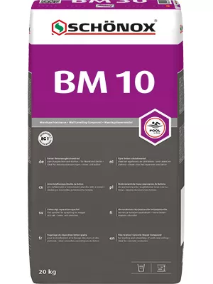per lisciare, livellare, intonacare e riparare superfici murali in calcestruzzo, calcestruzzo cellulare, muratura e altri supporti legati al cemento. Rivestito in resina, impermeabile ed estensibile. SCHÖNOX BM 10 sviluppa circa il 90% in meno di polvere se miscelato con acqua grazie alle materie prime più moderne e ai processi di produzione innovativi. Per spessori di strato da 1 a 10 mm senza materiale espanso. Estensibile fino a 20 mm. Per interni ed esterni.