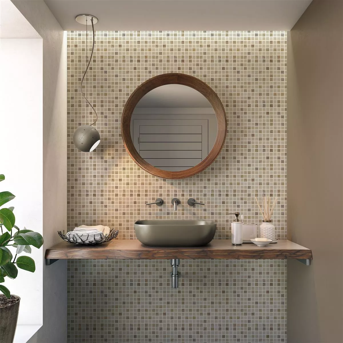 Combinando bellezza naturale, versatilità e resistenza allo scivolamento, le piastrelle a mosaico in pietra naturale in marmo marrone chiaro Lorentes Mix sono una scelta eccellente per chi cerca un pavimento o un rivestimento murale elegante e pratico.