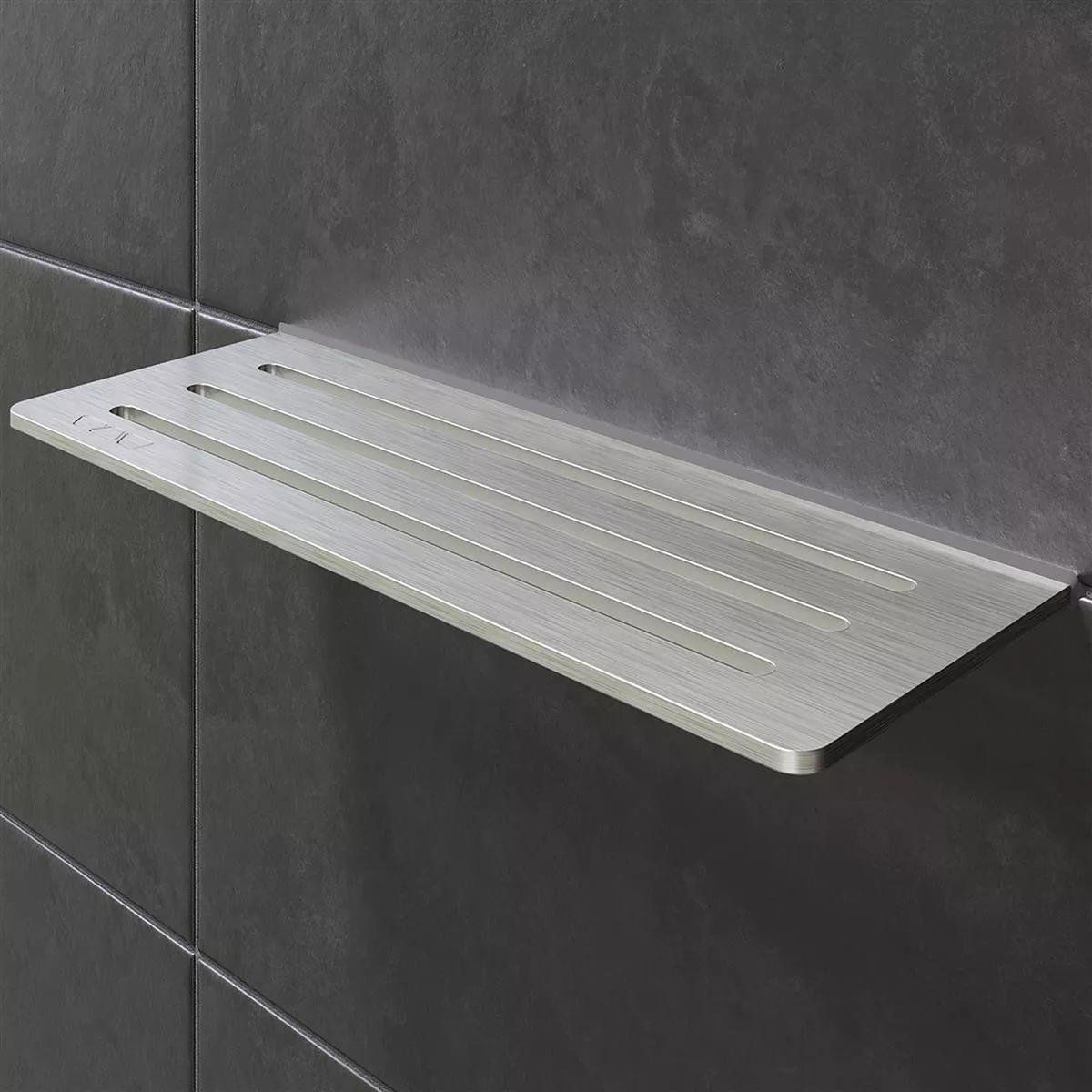 Mensola a muro rettangolare Sia in bagno che in cucina: potete utilizzare la mensola rettangolare Schlüter-SHELF-W ovunque nella zona della parete piana dove state attualmente posando le piastrelle. Grazie alle gambe di fissaggio trapezoidali perforate, gli scaffali sono estremamente stabili e resistenti, ma allo stesso tempo colpiscono anche per il loro aspetto moderno. Potete scegliere non solo tra cinque design accattivanti, ma anche tra acciaio inossidabile spazzolato e alluminio, quest'ultimo verniciato a polvere di alta qualità con un popolare colore TRENDLINE o un colore RAL MyDesign.
