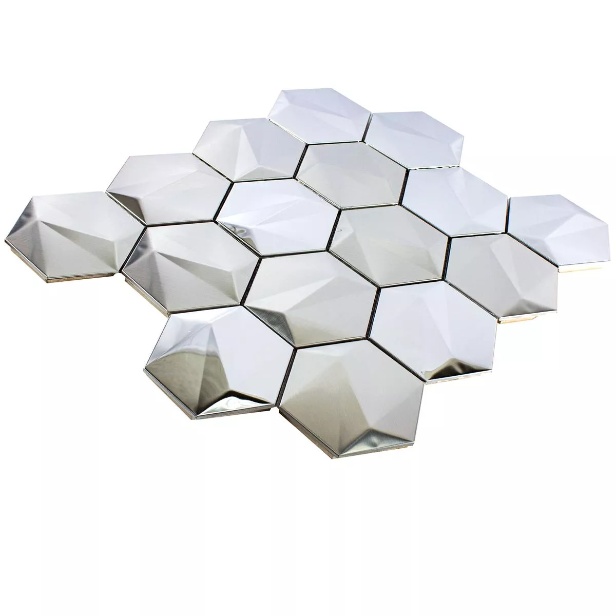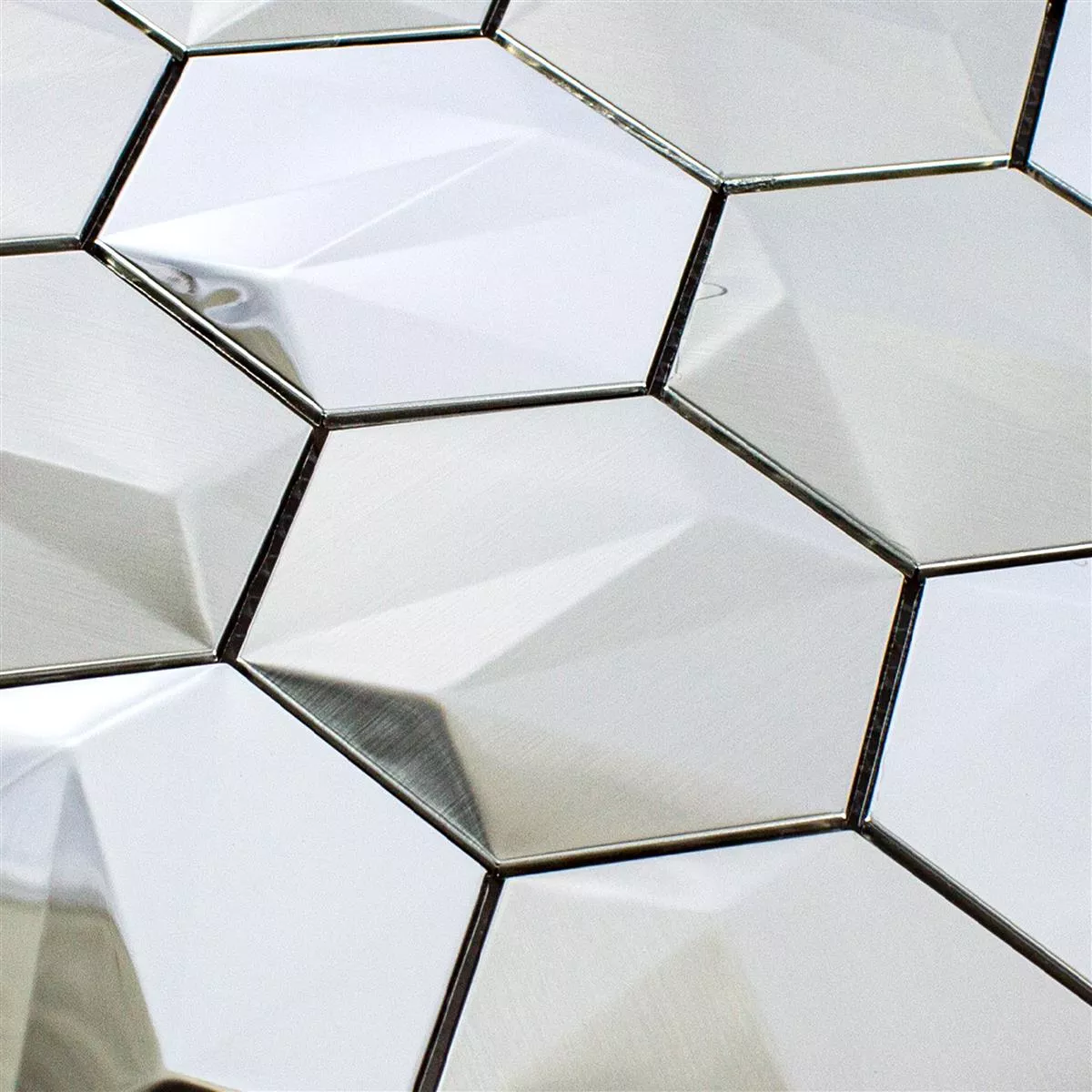 Le piastrelle a mosaico in acciaio inossidabile Durango Hexagon 3D Silver sono una scelta eccezionale per trasformare il tuo soggiorno, cucina o bagno in un ambiente moderno ed elegante. Con il loro colore argento e il materiale metallico, in particolare l'acciaio inossidabile, queste piastrelle conferiscono a qualsiasi parete un aspetto brillante e attraente.