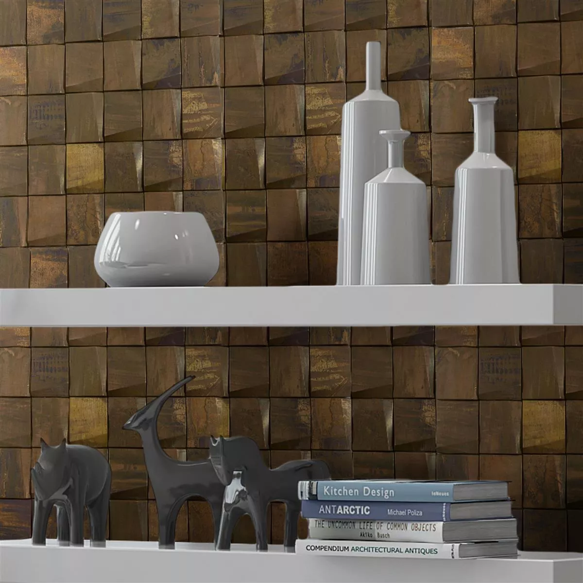 Le tessere di mosaico in rame metallo 3D Copperfield nel colore marrone caldo sono la scelta ideale per chi cerca un design unico e artistico per i propri ambienti. Dona alla tua casa un'impressionante struttura tridimensionale con queste piastrelle e lascia che le tue stanze brillino di nuovo splendore.
