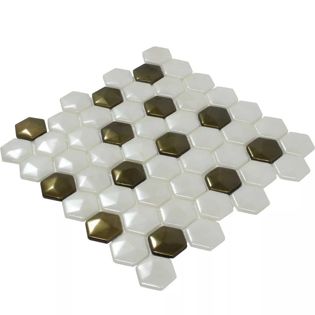 Mosaico Di Vetro Piastrelle Las Vegas Esagono 3D Bianco Oro