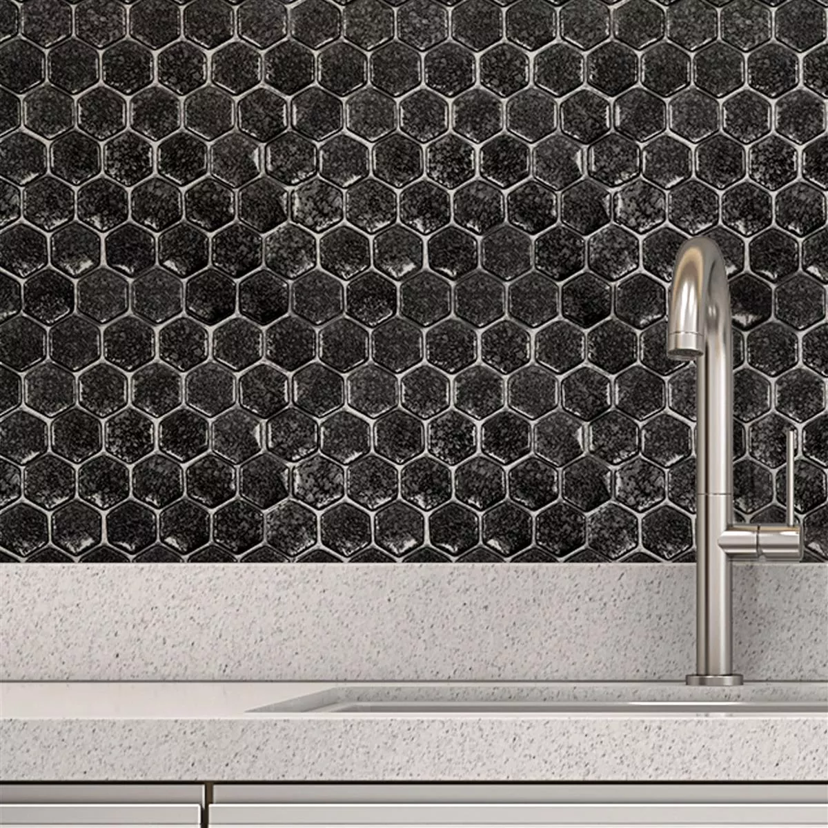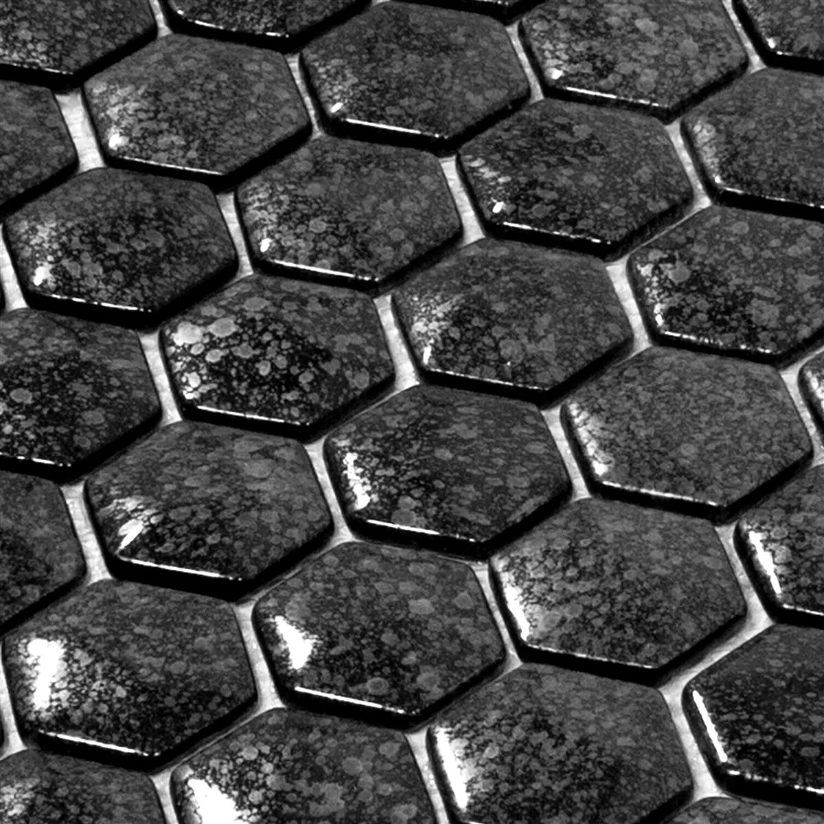 Le tessere di mosaico sono disponibili nel pratico formato esagonale da 29 x 29 cm. Ogni piastrella misura 40 x 40 mm ed ha uno spessore di 7,5 mm, creando un aspetto sorprendente ma armonioso. La superficie lucida cattura la luce ed esalta l'elegante tonalità grigia, che può essere integrata in vari modi in vari design di interni.