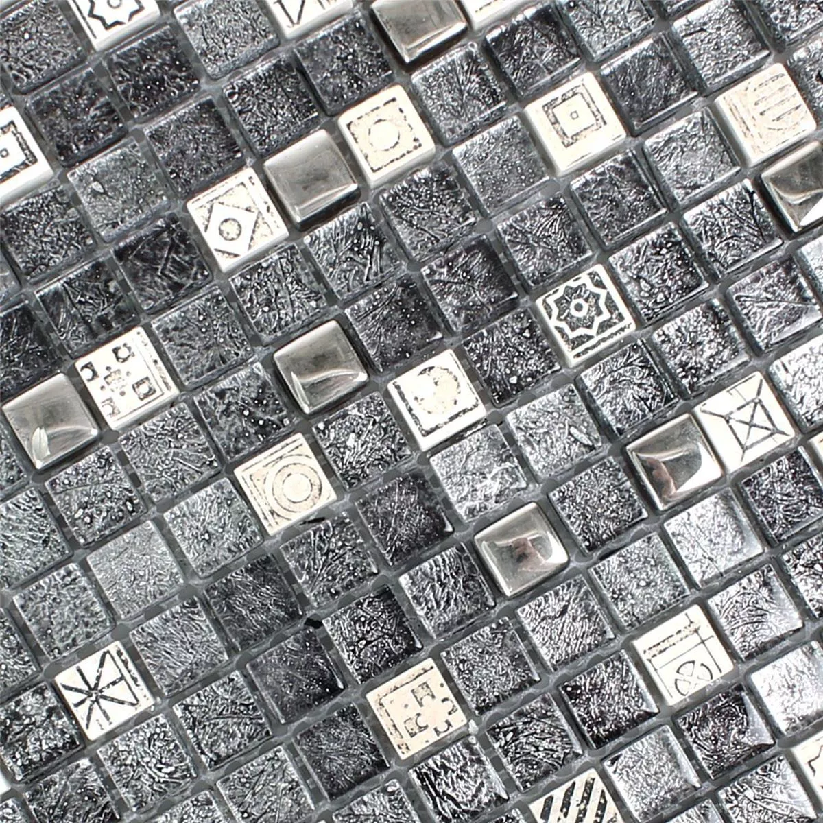 Grazie al design dettagliato, le piastrelle sembrano molto eleganti. Poiché i singoli tasselli del mosaico sono molto piccoli, la vista del muro ricoperto da essi rimane interessante per molto tempo. I colori utilizzati (bianco, argento e nero) sono neutri allo stesso tempo.