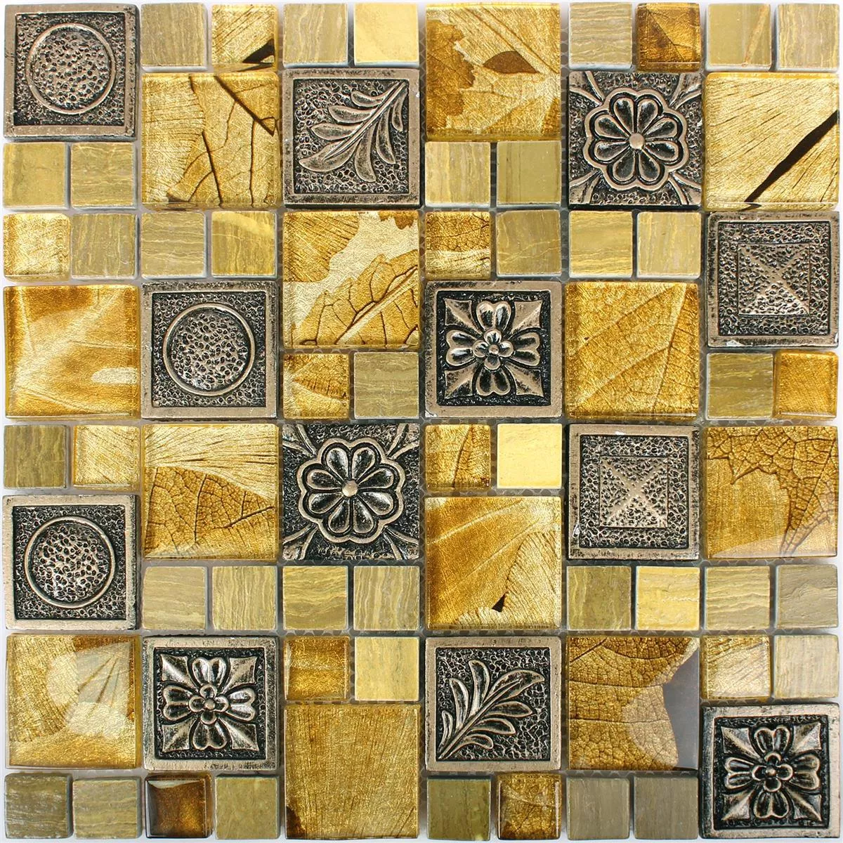 La piastrella a mosaico Levanzo Glass Resin Ornament Mix Gold dona alla tua terrazza coperta o alla tua zona giorno un aspetto mistico e orientale. Coprono esattamente questo tipo di look retrò che è molto popolare al momento.