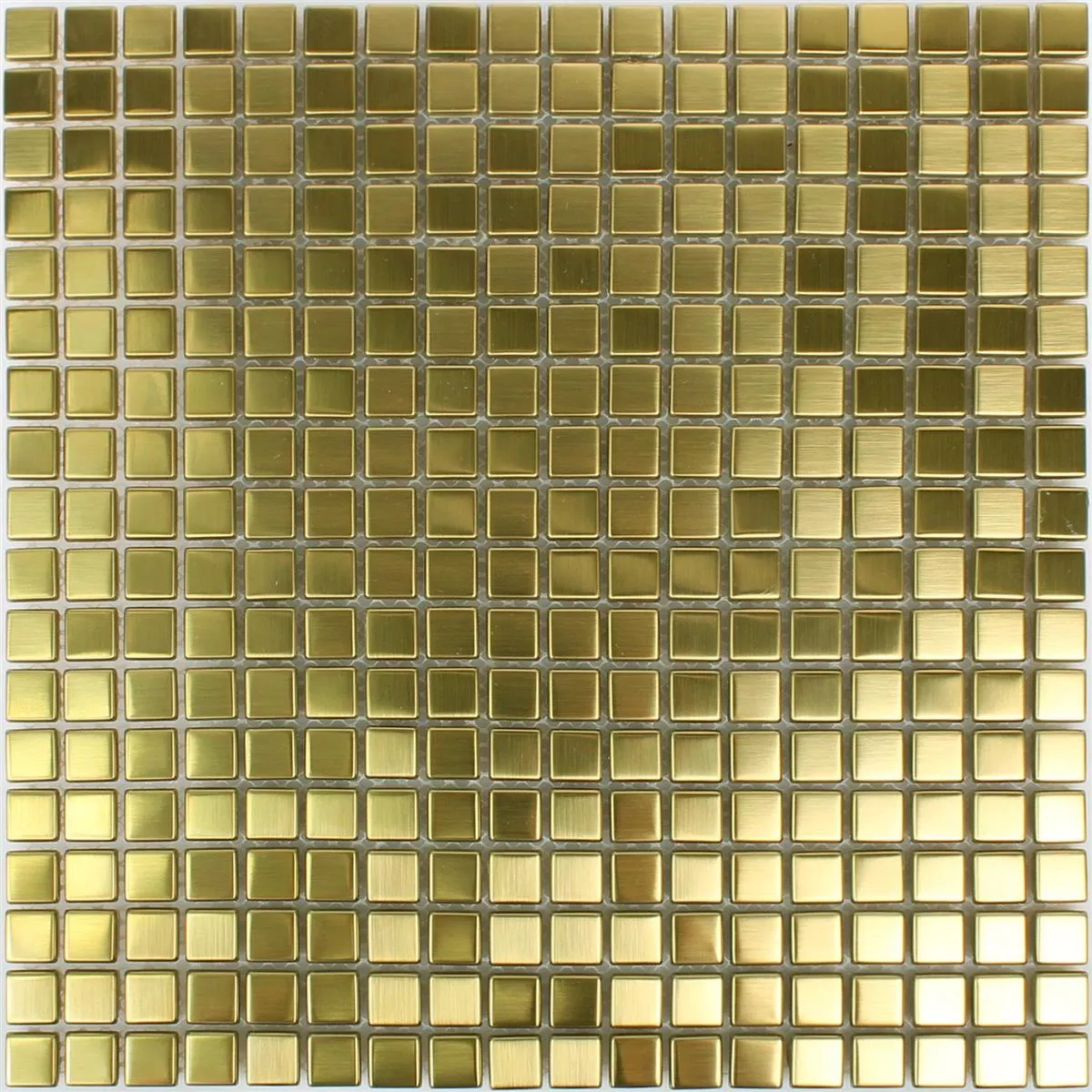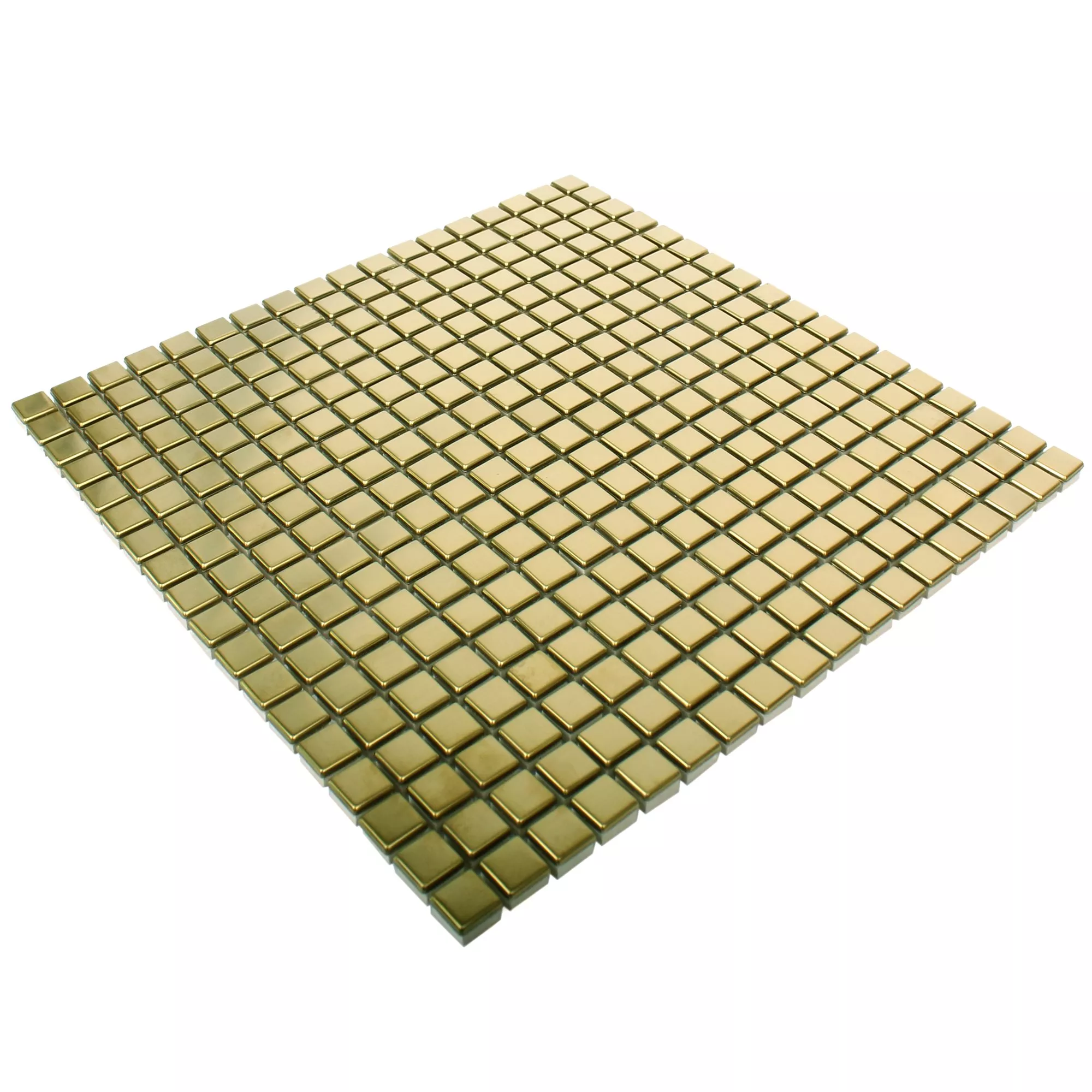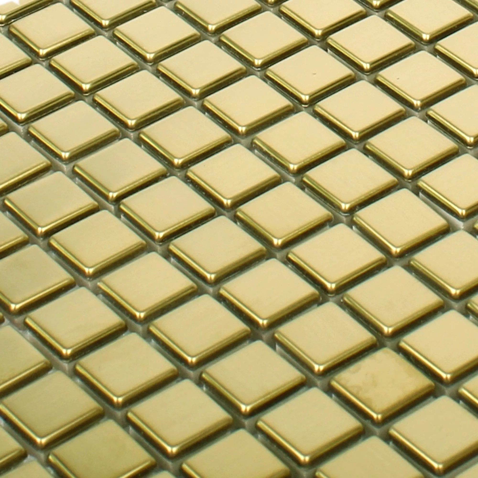 Le tessere di mosaico in acciaio inox metallo Baikal Gold fanno brillare l'intera stanza con il loro caldo luccichio dorato. Farebbero molto bene anche in bagno. Ma le piastrelle a mosaico in acciaio inox metallo Baikal Gold non sono adatte come piastrelle per il bagno. Naturalmente, in commercio sono disponibili anche piastrelle per bagno di questo tipo.