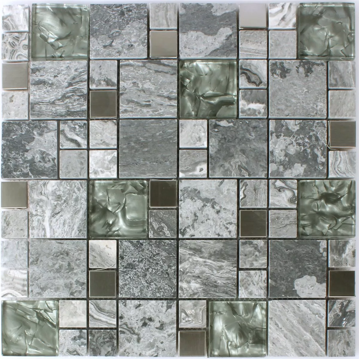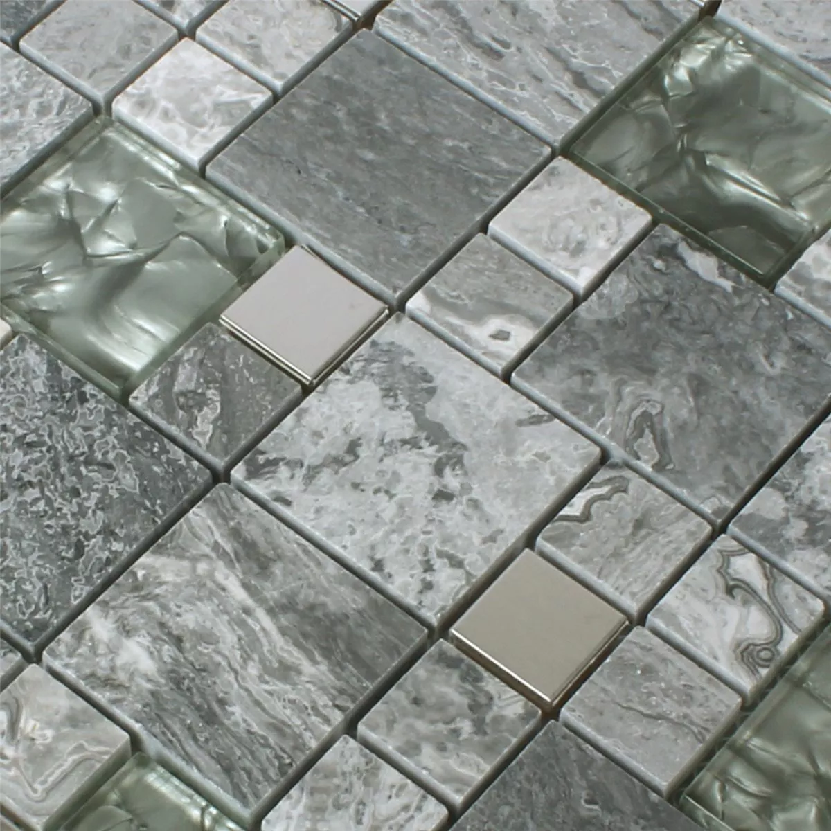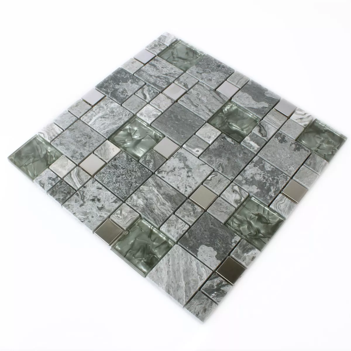 Mosaico Metallo Vetro Pietra Naturale Mix Grigio Argento