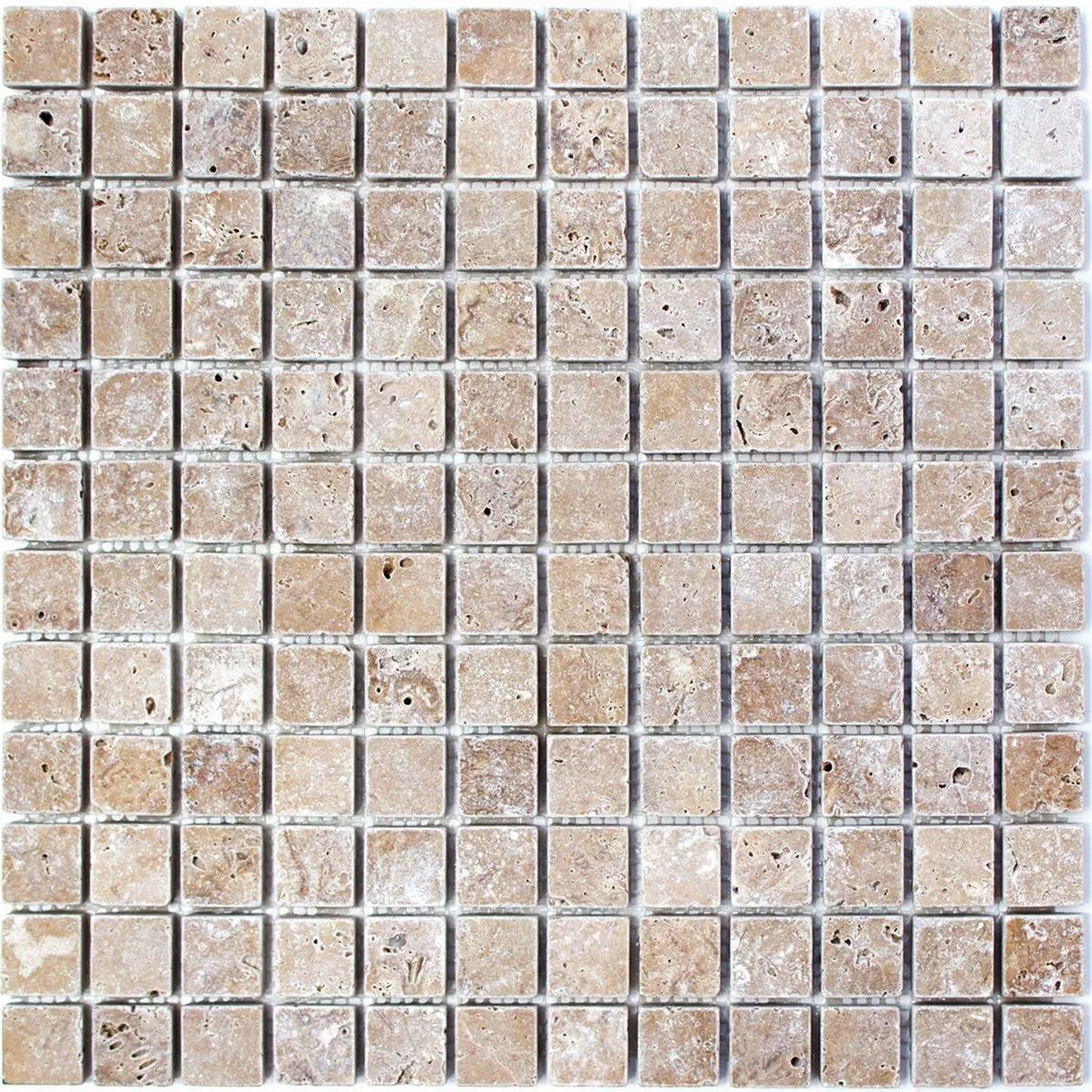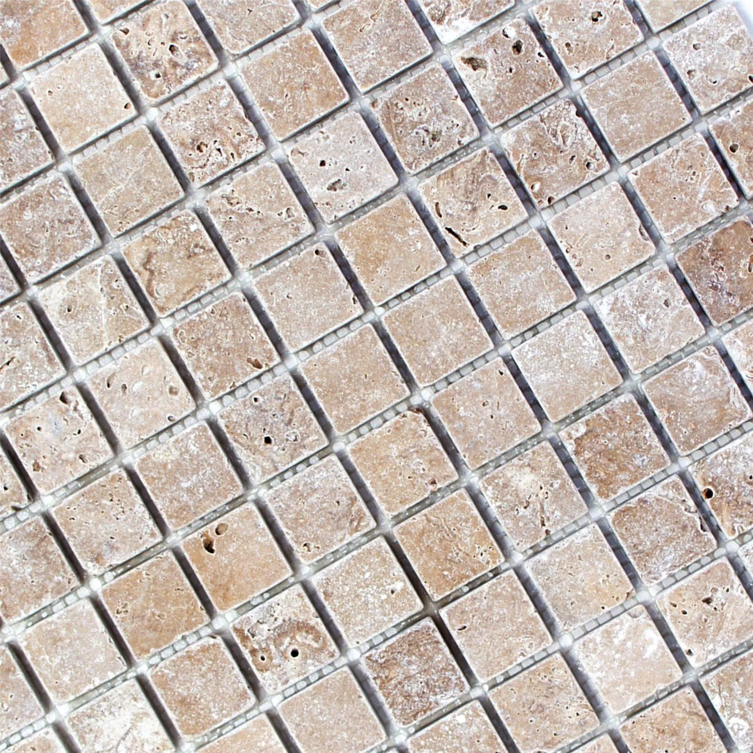 Le tessere di mosaico in travertino Patara Noce 23 sono costituite da roccia sedimentaria terrestre, formata da un processo di rapida precipitazione di carbonato di calcio alla foce di sorgenti termali o in grotte calcaree. Il travertino Patara Noce ha spesso un aspetto fibroso o concentrato ed è disponibile nelle varietà bianco, marrone, crema e ruggine. Queste piastrelle in pietra naturale conferiscono un calore unico a cucine, soggiorni e bagni. Il travertino è comunemente usato nelle case moderne come materiale da costruzione naturale e resistente.