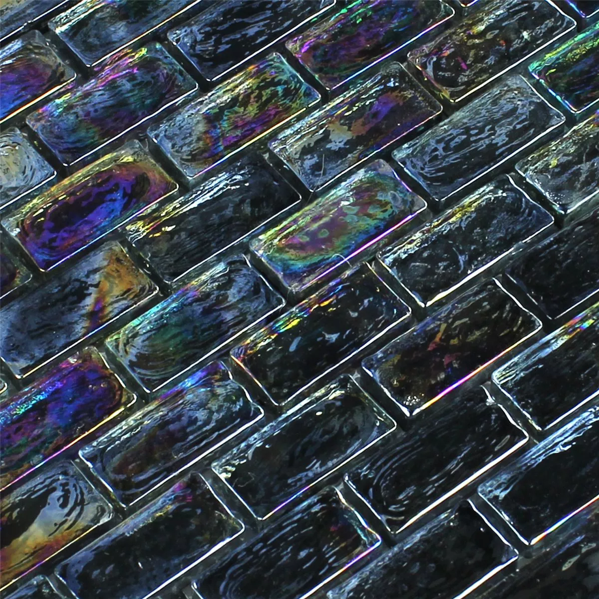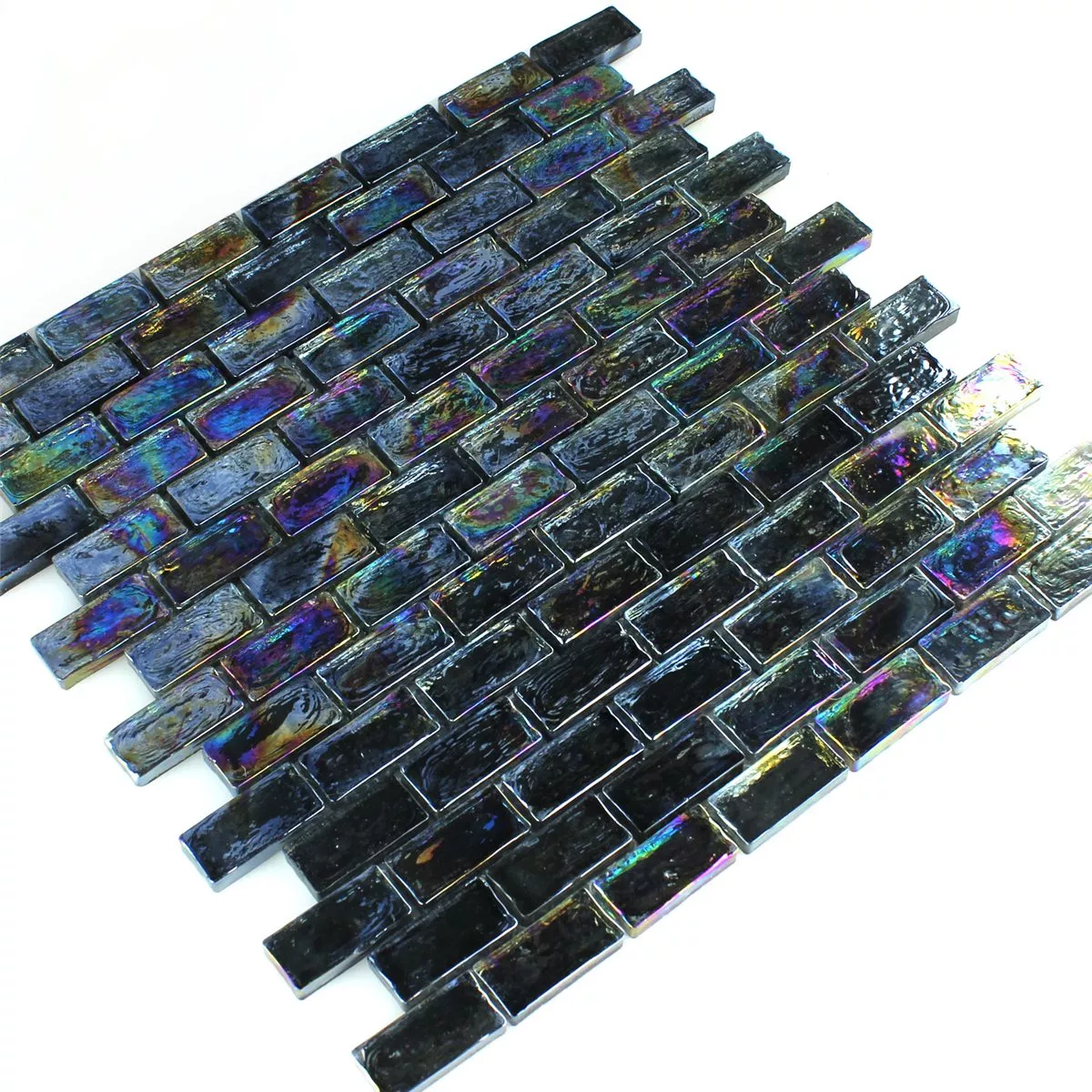 Mosaico Vetro Effetto Petrol Black 20x42x8mm