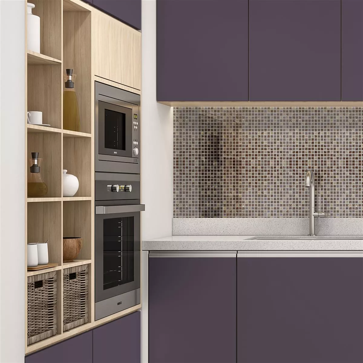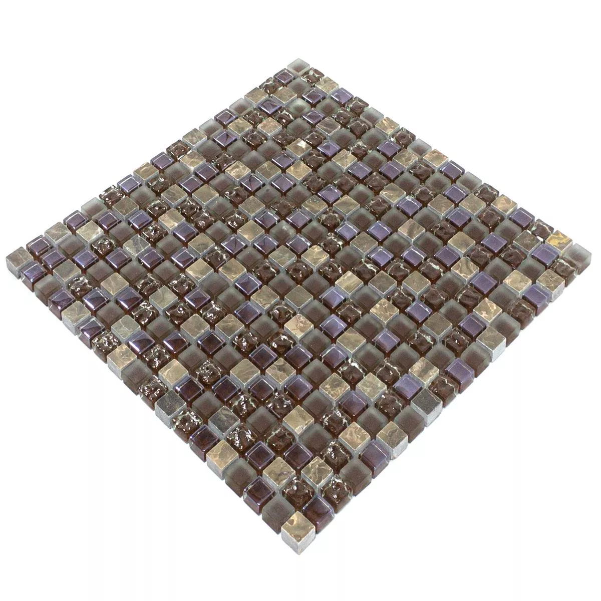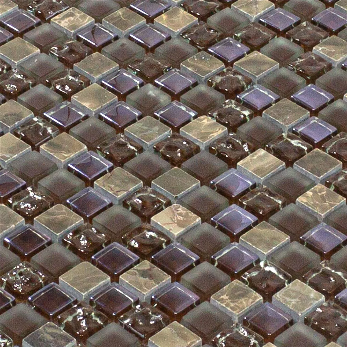 Il mosaico Estrella in marrone unisce pietra naturale, gres porcellanato e vetro per creare un attraente mix di materiali. Questo rivestimento offre un aspetto simile al marmo e aggiunge un tocco elegante a qualsiasi stanza.