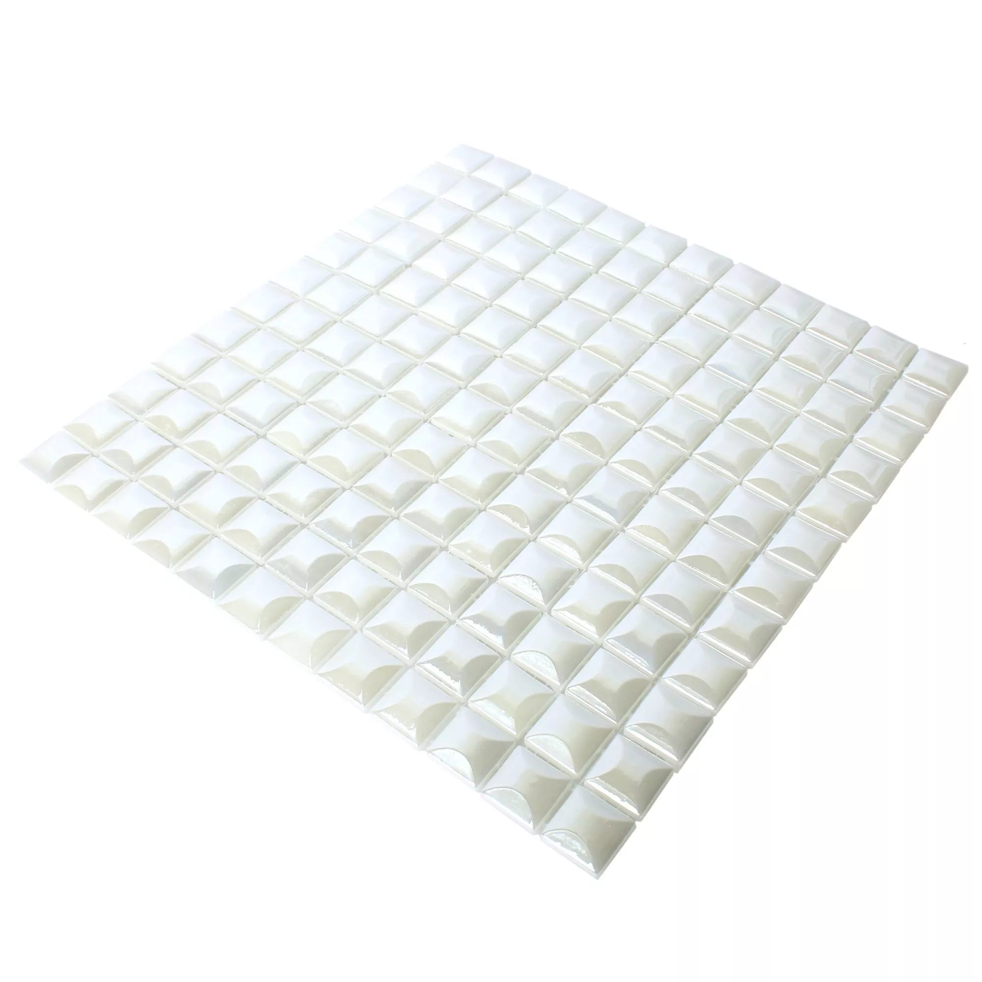 Mosaico Vetro Piastrella Monrovia Bianco 3D Metallico